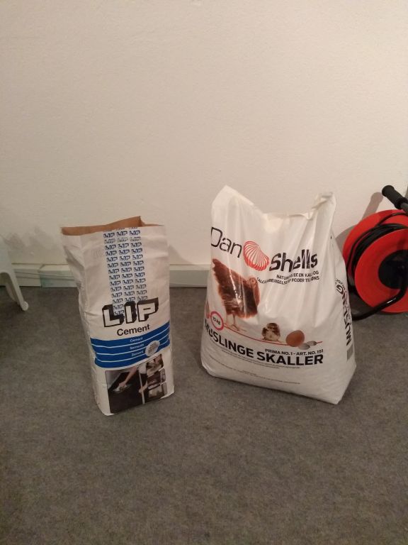 Det er lavet af muslingeskaller blandet op med en smule hvid cement og en masse køkkensalt for at gøre det hele så porøs så muligt, den rette blanding tog lidt tid at finde så det ikke blev for massiv og tungt men synes faktisk det er blevet et udemærket resultat :D