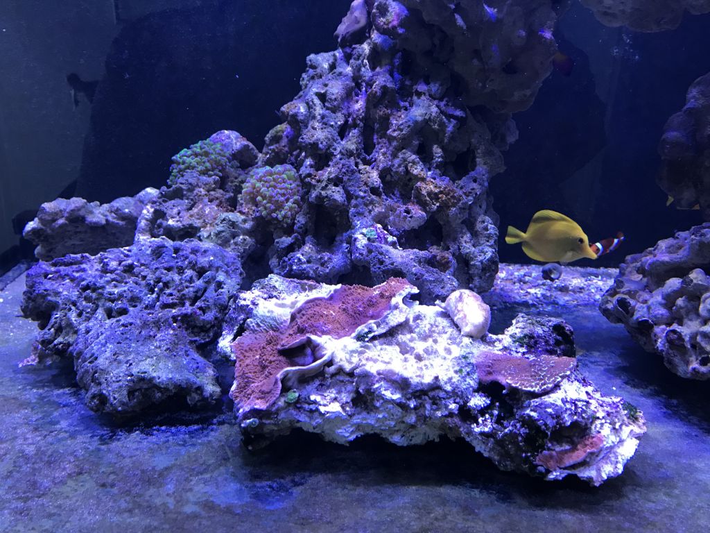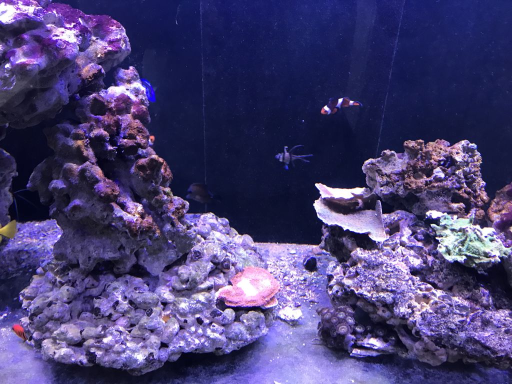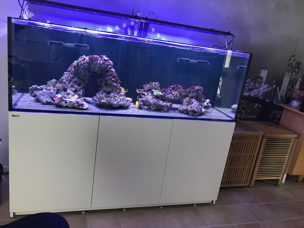 Hejsa. Mit akvarie har nu kørt nogle mdr og har lidt cyano på stenene ( se foto 3+4 foroven på stenene ) Jeg har fået lidt koraller, en hammerkoral og lidt forskellige montipora fragmenter, er ikke begyndt med dossering endnu, vil køre med aquaforest 3 væsker ( balling) Vil tro at no4 værdien kommer fra fodring med nori tang. Mine Gyre 350 sidder af hensyn til udseende på bagvæggen, foto 1 - kører gyre mode fra +10 til +60 %, ville de give bedre flow i enderne ?