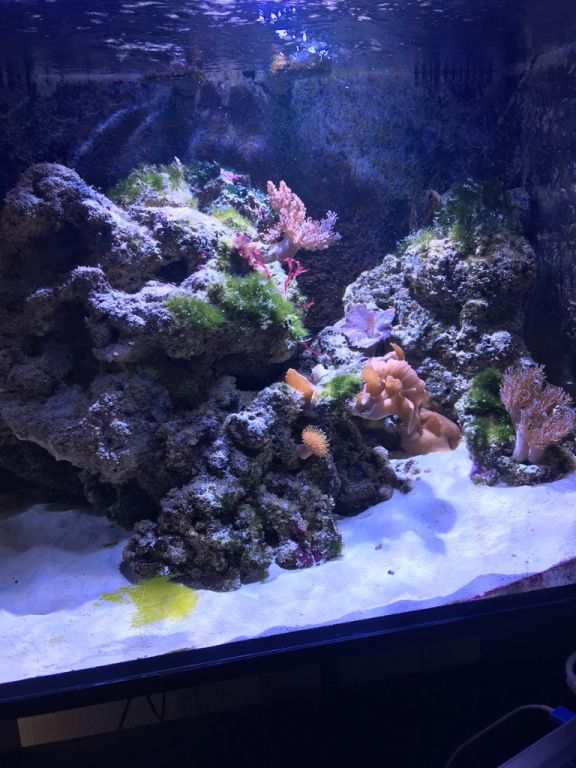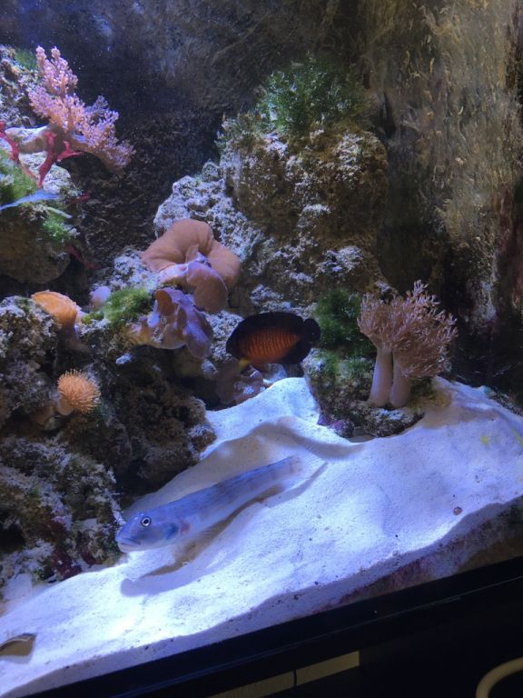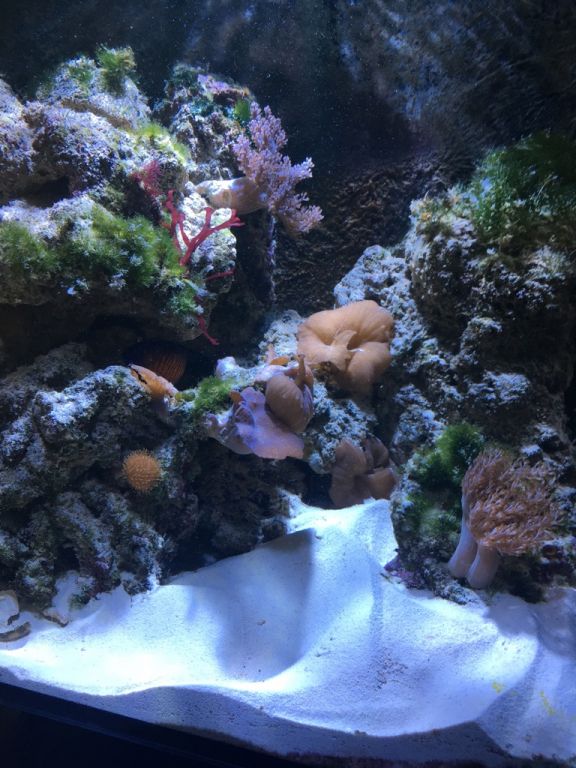 men efter 2.dage er det næsten op at køre & mit levende sand er snart lige så hvidt som før & har lidt svæv i vandet da min sandspiser & bispinosa samt mine sand snegle er i gang med at rense stenene & sandet
