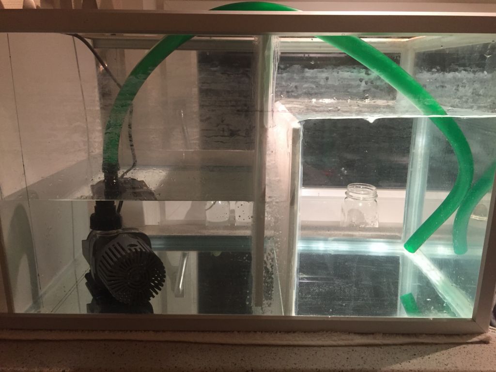 Dette skaber et stort fald fra skummer og nedløbsrummet i højre side til retur pumpe rummet.. hvad ville i gøre? Højden i skummer rummet er lidt høj, men kun 3 cm højere end anbefalet til skummeren. Alternativ 1