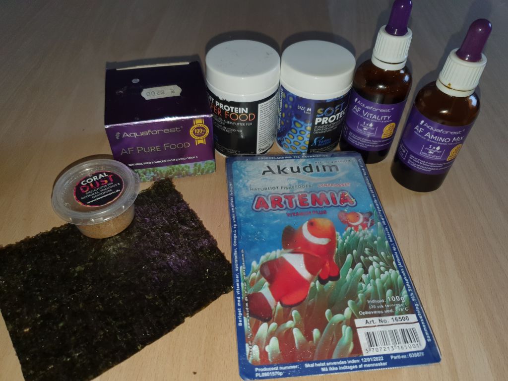 Flagefoder, 2 frostterninger og Noritang til mine velnærede fisk