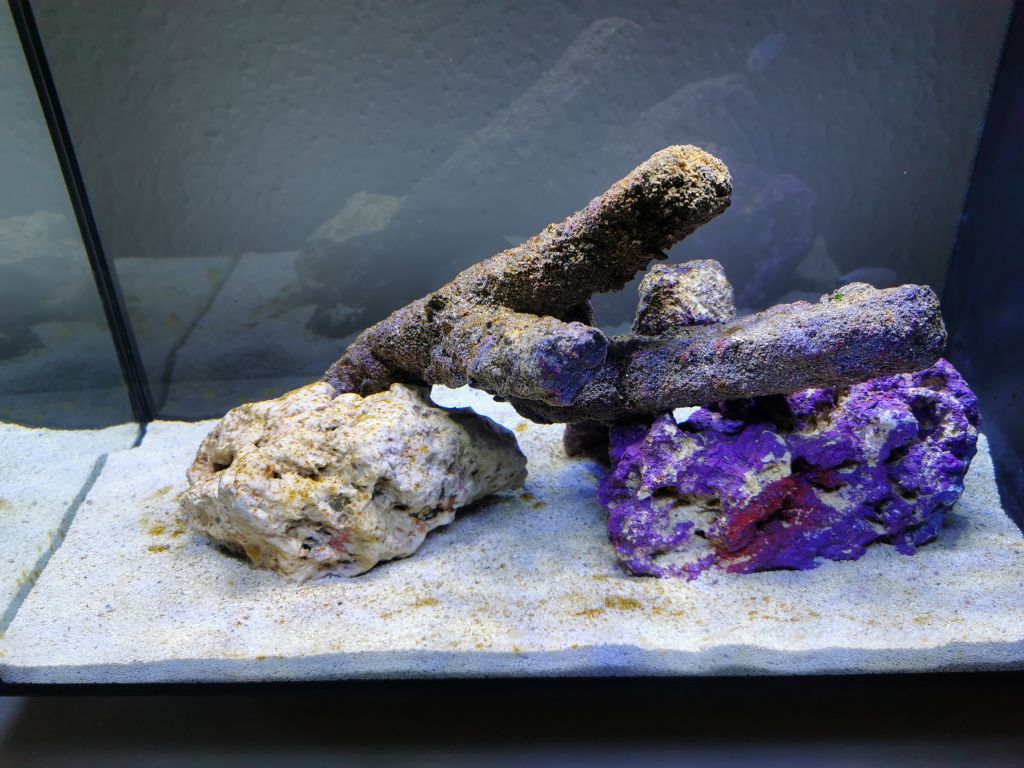 Jeg startede med dødt Sand, døde sten. så ja, alt gik meget langsomt, i forhold til manualen i Red Sea Kittet. Men gjorde bare hvad den sagde og dermed mistede jeg nogle fisk efter et stykke tid.