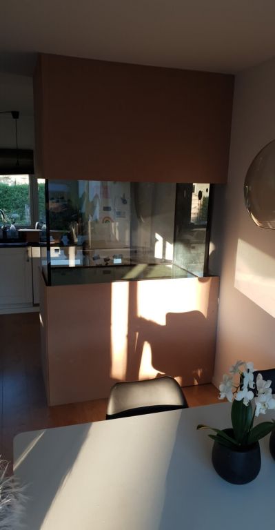 Vi blev dog til alt held enige om at rydde møblet af vejen og etablere det kommende akvarie på den nuværende position som møblet bestod i. Målet var ikke at gå ud over eksisterende mål som bordet fyldte, da det ville skabe utroligt trægt plads i køkkenet. Derfor havde jeg 137cm x 100 cm at gøre godt med.