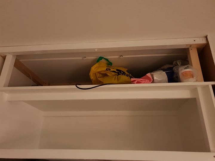 Vi havde et køkkenmøbel der blot bestod af to køkkenoverskabe som var blevet lavet til skuffe opbevaring med en stor bordplade på. En kæmpe øjebæ i mine øjne, et vidunder bræt for min kone...