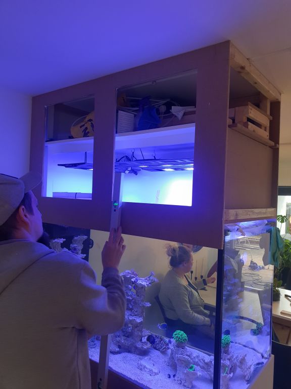 Her ses akvariet med bølgebrydere der er ved at blive monteret