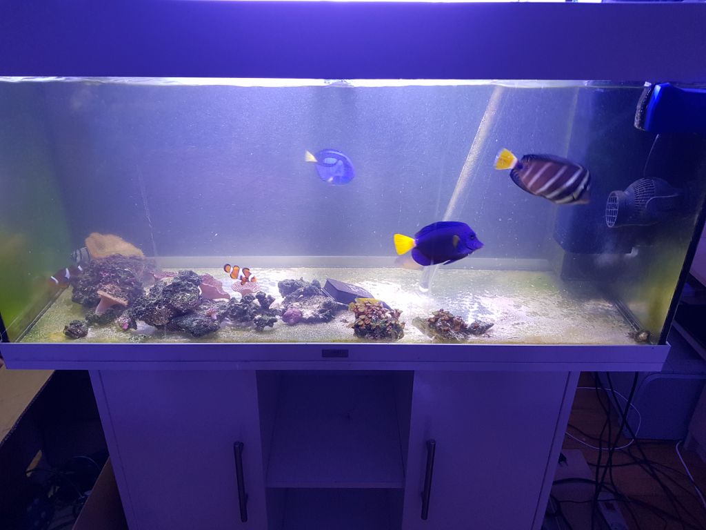 Det blev så ikke en gul kirurg, men en Fox Face og en dværg kejser i stedet. Satser på at vandet bliver er så rent at jeg kan se hvad jeg laver, så der kan bygges færdig i aften. Det ender med at fiskene klager over boligforholdene Om de har lige nu
