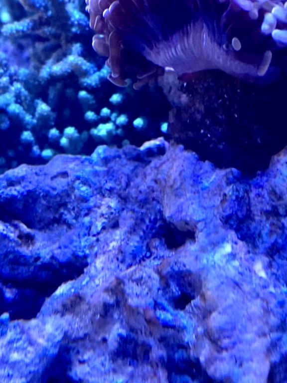 Hvad er dette jeg har fået i min balje, har fået et hurtigt glimt af den et par gangen, men her sidste dag noget jeg enlig at få taget billede af den og den er vokset siden jeg så den sidst, hvad er det og er det noget der kan skade mine koraler/fisk?