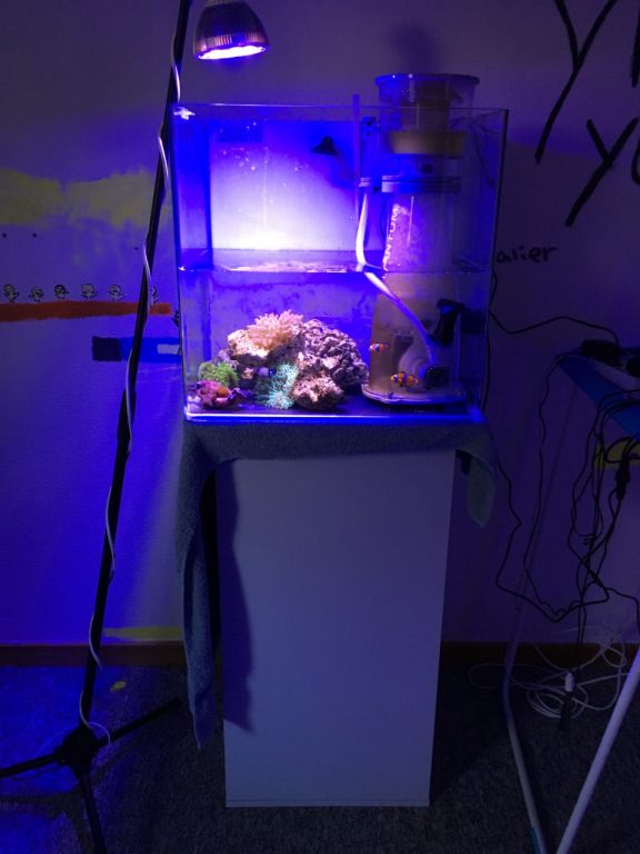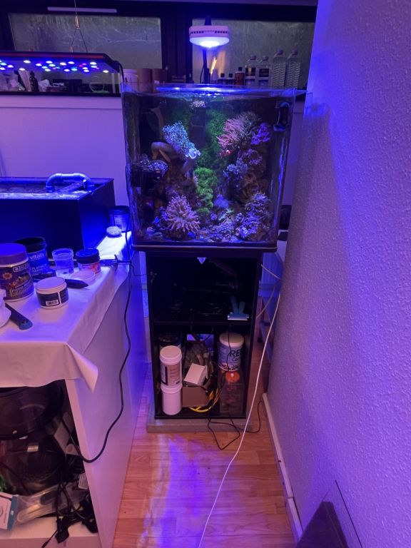 Selvom det kun er på 113 liter, og forestår udskiftning, så nyder vi det ret meget, og det har kørt perfekt længe. Hos os skal det kunne tåle perioder, hvor vandværdierne kan svinge lidt. Har dog bidt i det sure æble og købt doseringspumper for at køre lidt Balling igen. Har også forsøgt mig med lidt forskellige saltmærker og testet forskelligt udstyr af i jagten på det optimale udstyr.