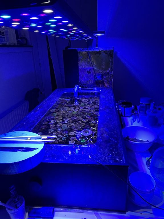AI Prime på display og Evergro på Zoa-akvariet. AI Prime fungerer fint til mit behov, oveni købet selvom jeg har topglas på for at minimere vandfordampning. Dog bemærk en ting og lyt til et godt råd: skru ned for UV-lyset på dem, da plastiklinsen ellers smelter ganske enkelt over tid ligeud for den ene diode. Plastikken nedbrydes af en eller anden årsag. Tror jeg kørte dem på 80-100%, indtil jeg opdagede problemet. Evergro-lampe over Zoa-akvariet virker super fint.
