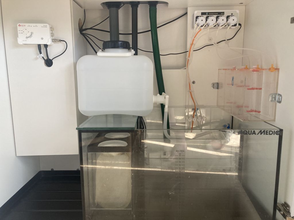 Med flere fede detaljer bl.a rum til filtersokker, drypbakke under sumpen, indstillelig skillevæg mellem filterrum og returkammer og et automatisk fyld op system med en fylder der åbner for osmosevandet, når vandstanden er for lav (skidesmart og uden brug af strøm)