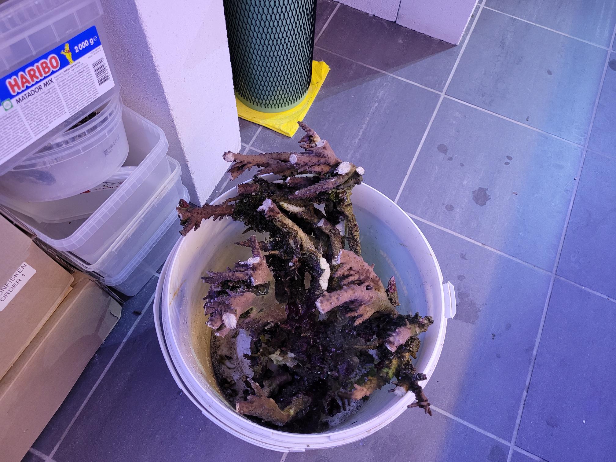 Så jeg har fået det nogenlunde til at se fornuftigt ud og må vente med resten til weekenden. Så der kommer masser af fine frags. Så skal man bruge nogle billige koraller, så er det nu man skal slå til. Cali tort, Oregon tort, Austera og Bali slimer. Man kan få dem i lige den størrelse man ønsker. Men det skal være i weekenden, da jeg ikke har plads til dem i fragtankene. Så kontakt mig endelig, hvis det skulle have interesse.