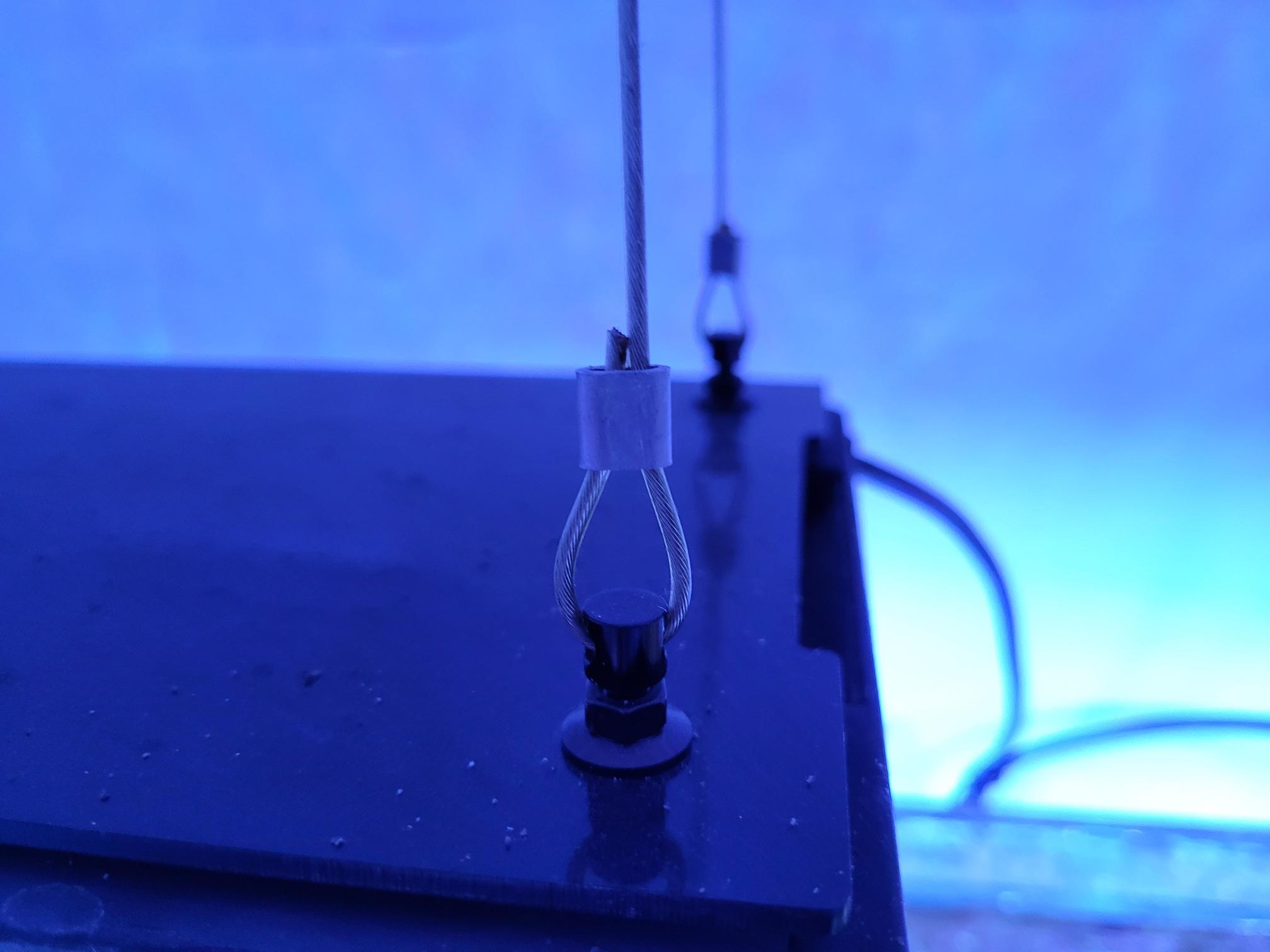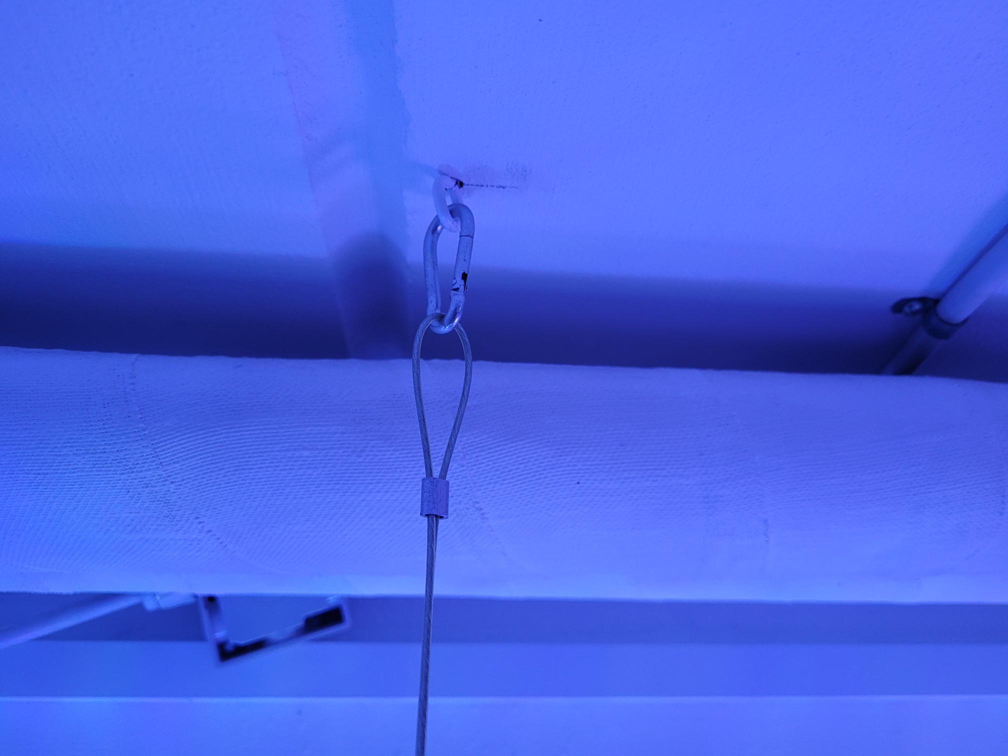 Da jeg skulle have de "gulve" op fra fragtanken, så var det rart at jeg bare kunne skubbe lampen til side, uden at spekulere over om den kunne falde ned. Det kan de ikke. Jeg har også arbejdet med de ophæng der følger med og de er udmærkede. Jeg havde bare ikke nogen ved hånden da jeg monterede dem.