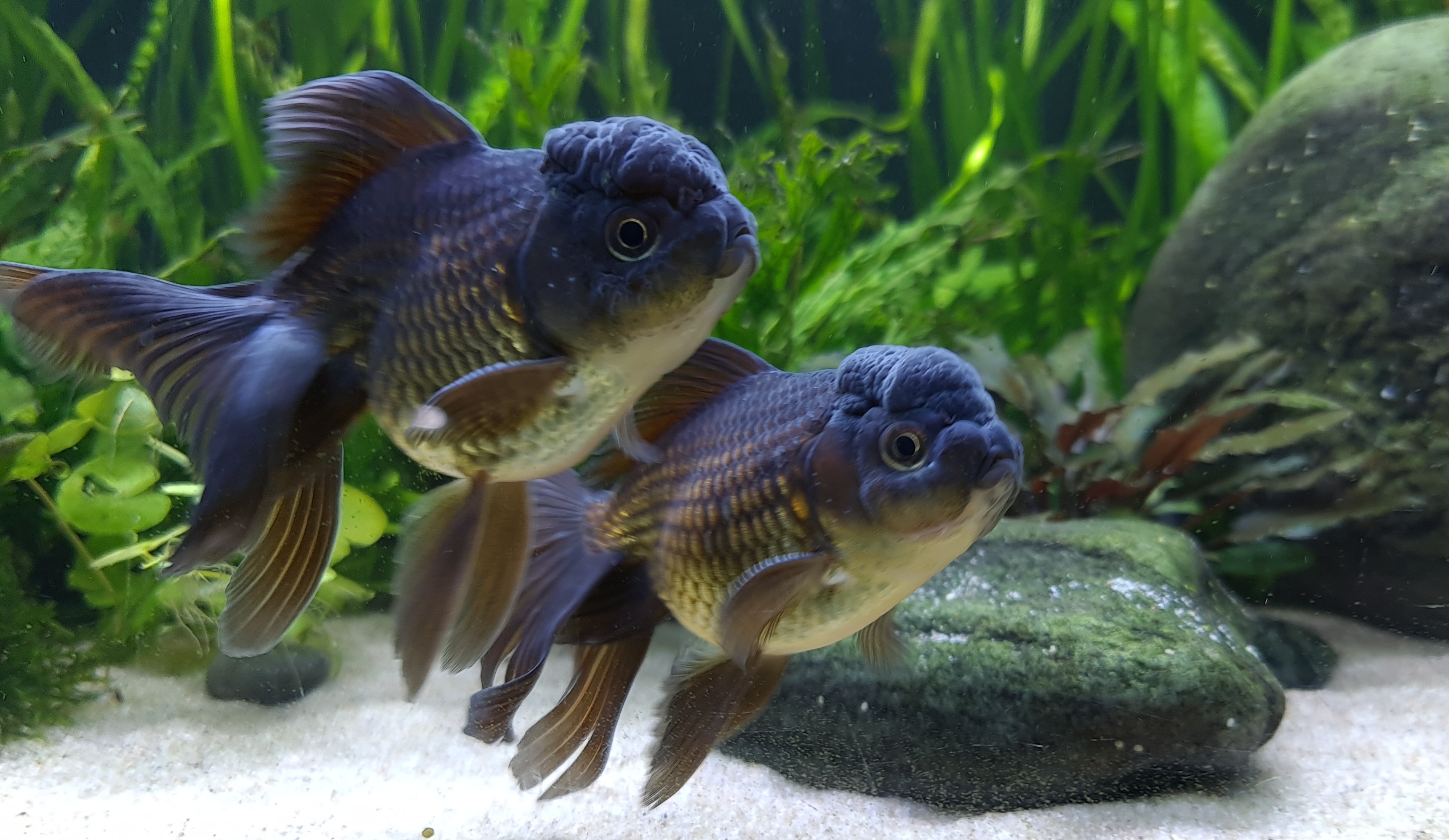 Dyr: 3 store Oranda, 2 små Ranchu, 2 hillstream loach samt 150 Neocaridina rejer.