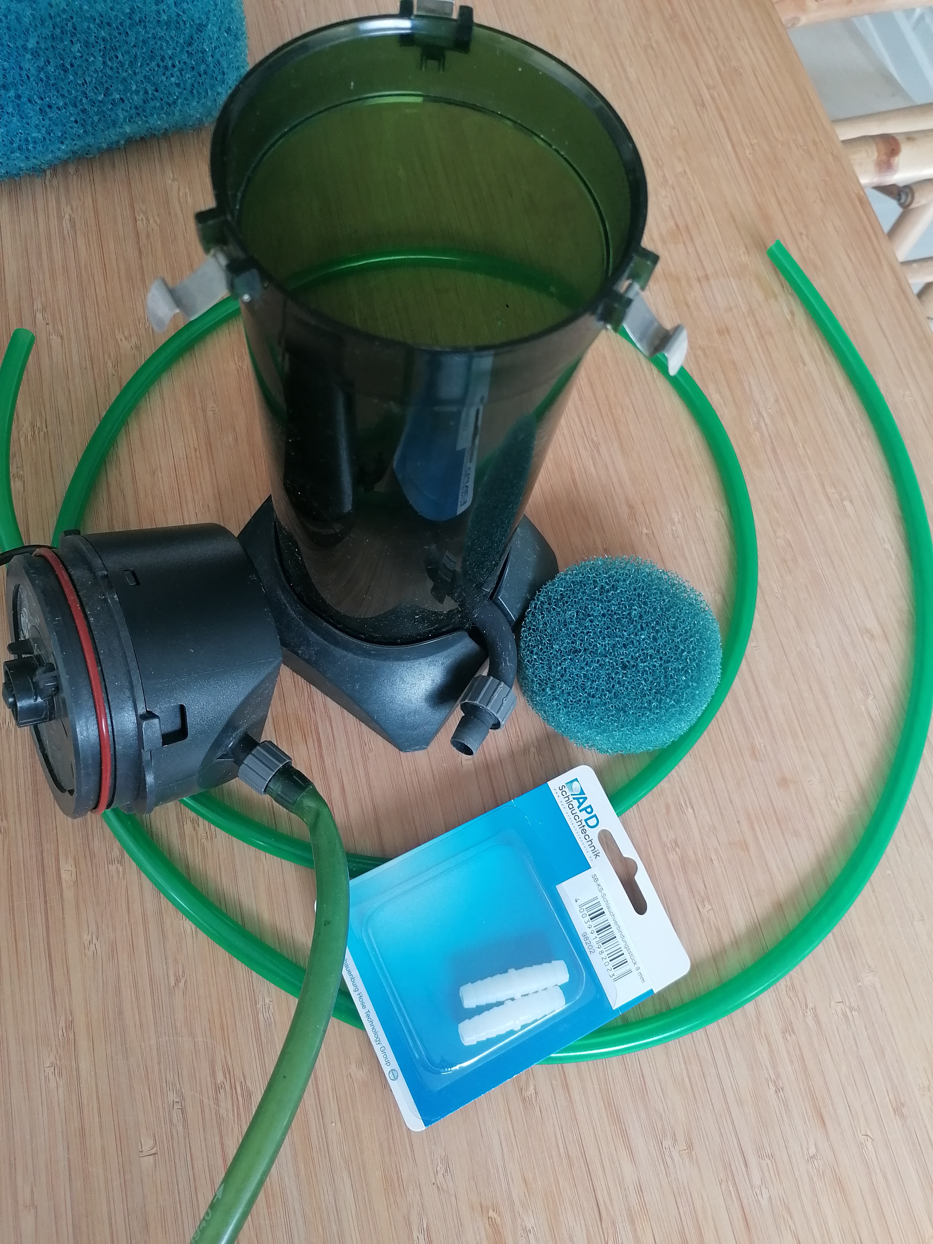 Bor 10 store huller i bunden. 10mm eller ligne . Smid en grov filtersvamp i bunden så den går op over hullerne. Så falder mediet ikke ud og du har dig en co2 skubber for 100kr