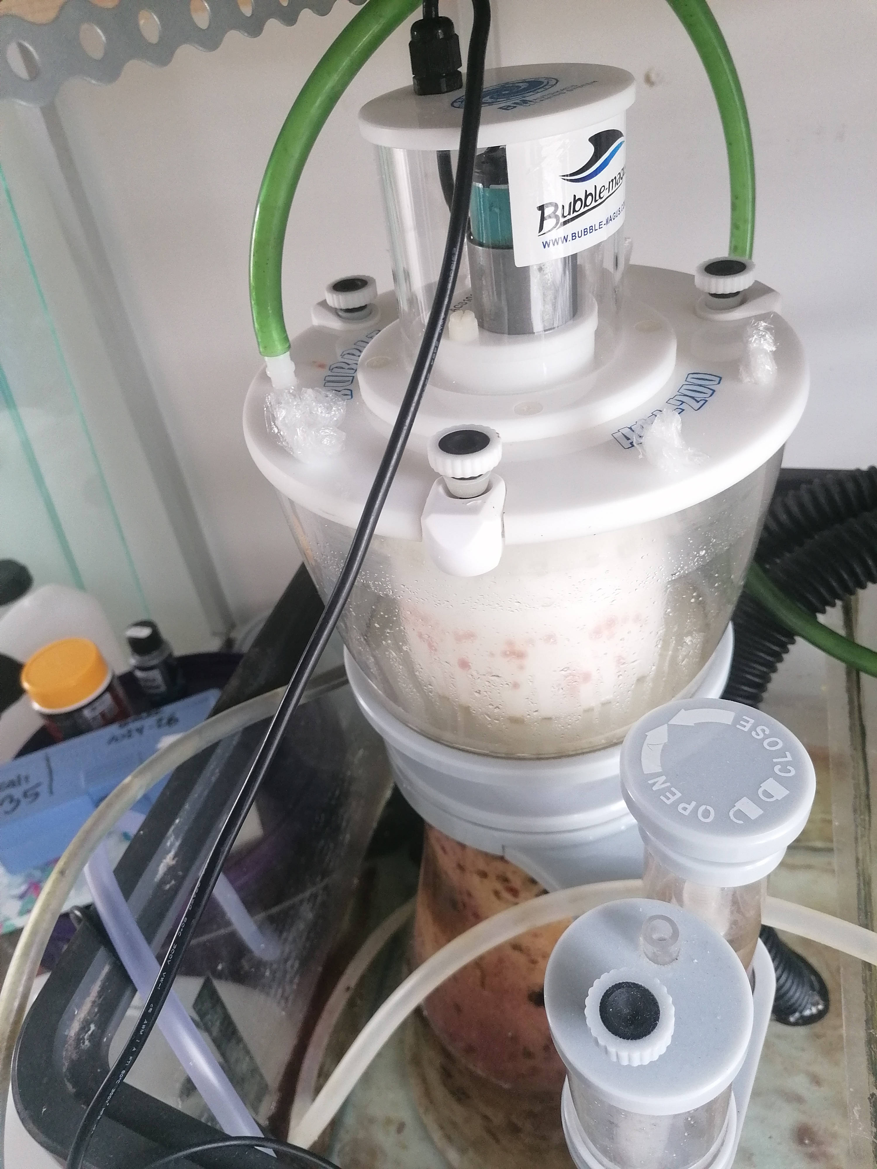 Der er ca 400gram kalkwasser pulver i filteret. Jeg har lige da jeg satte den til skruet min skummer mere åben pga undertrykket fra filteret... Det er ihvertfald hvad jeg tænker...