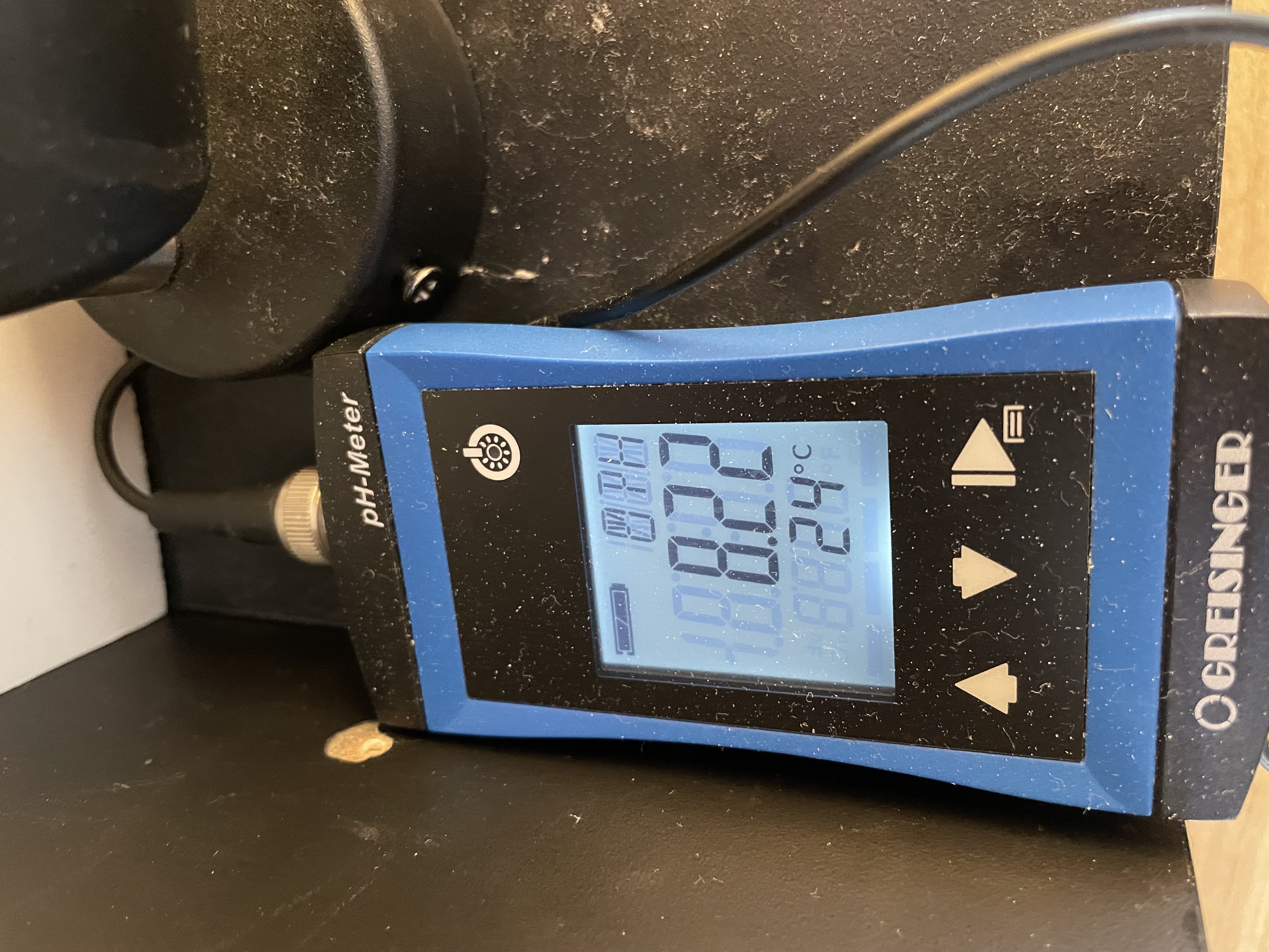 jeg har lige målt ph (salifert). Ph er over 8,3 men ikke helt 8,6 på farvekoden