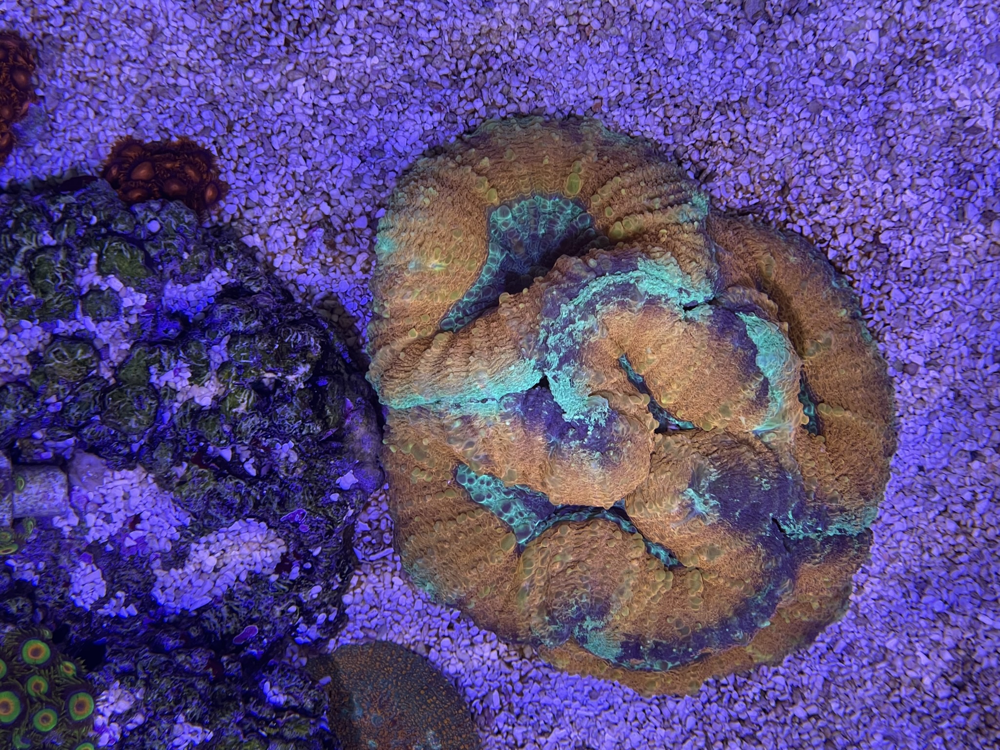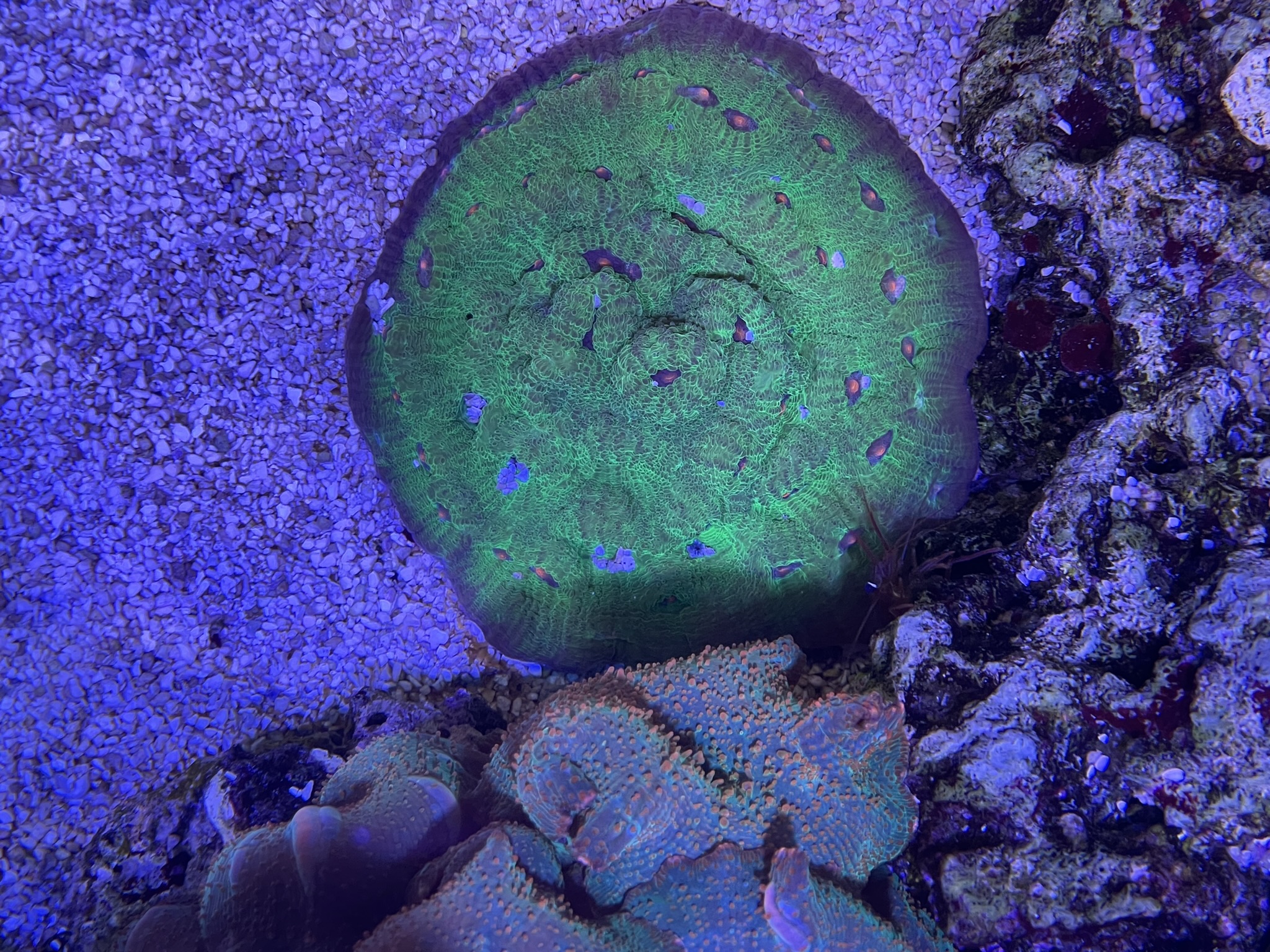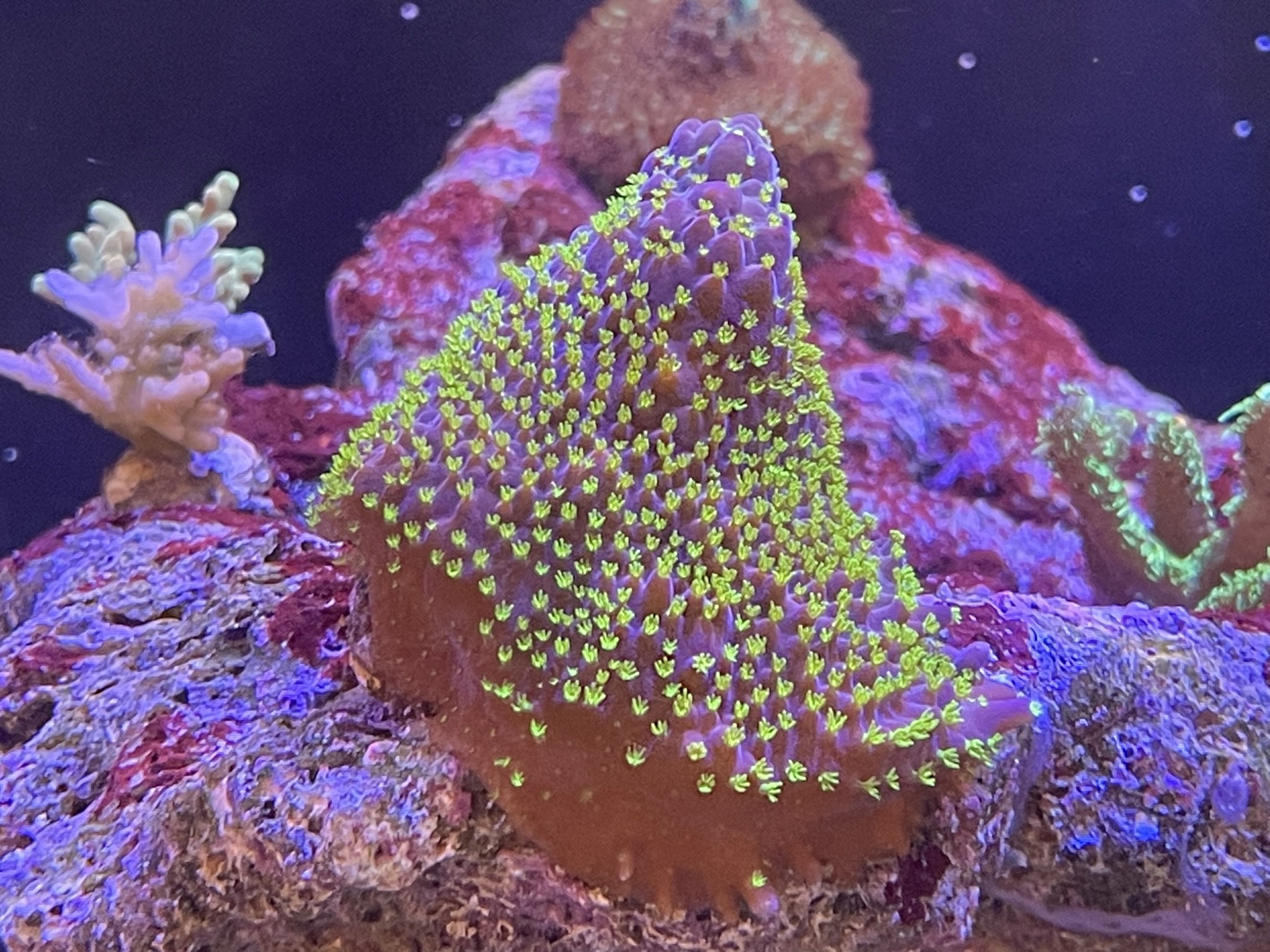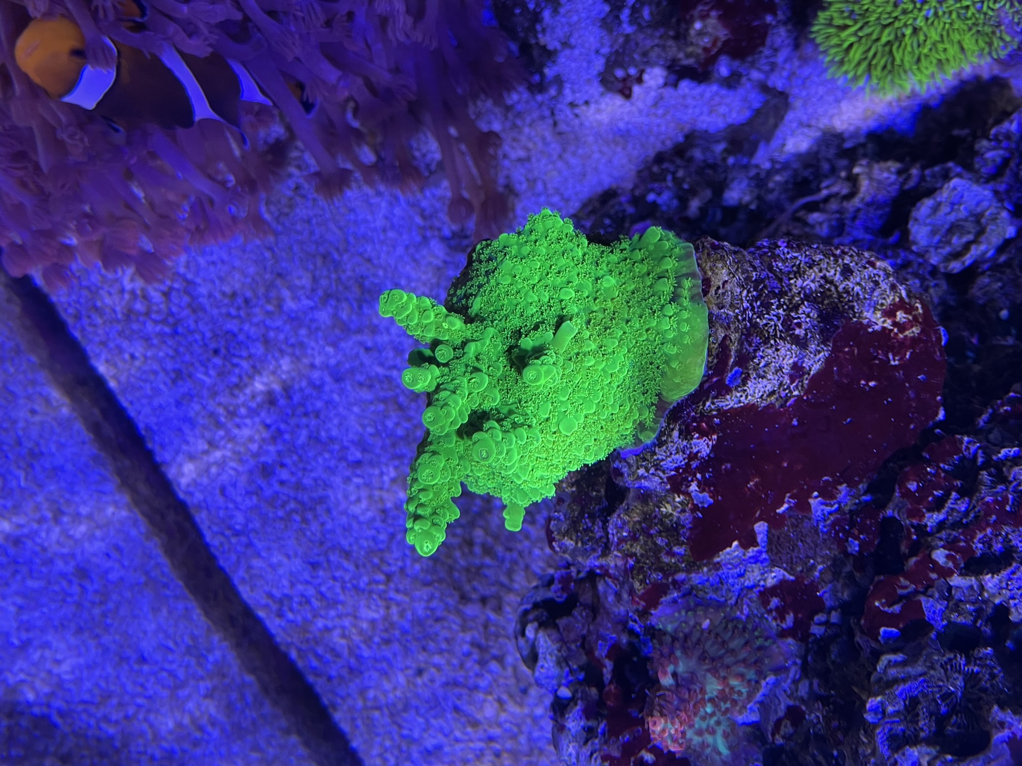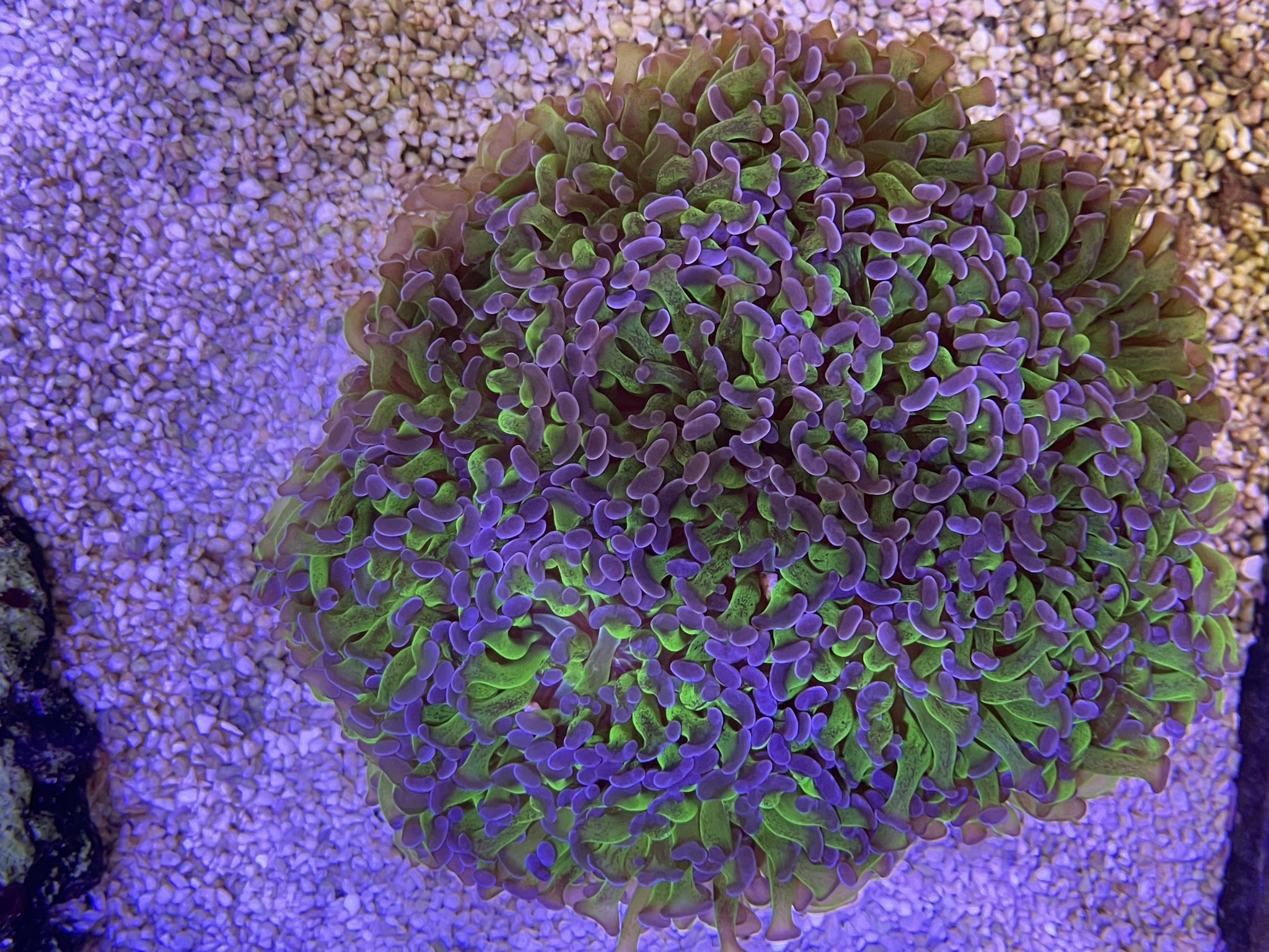 Min har aldrig formået at få farve.. men tror lidt det er fordi mit søpindsvin har en fetish med at hente koraller og smide dem lige midt i den. Som om den er en tallerken der skal fyldes..