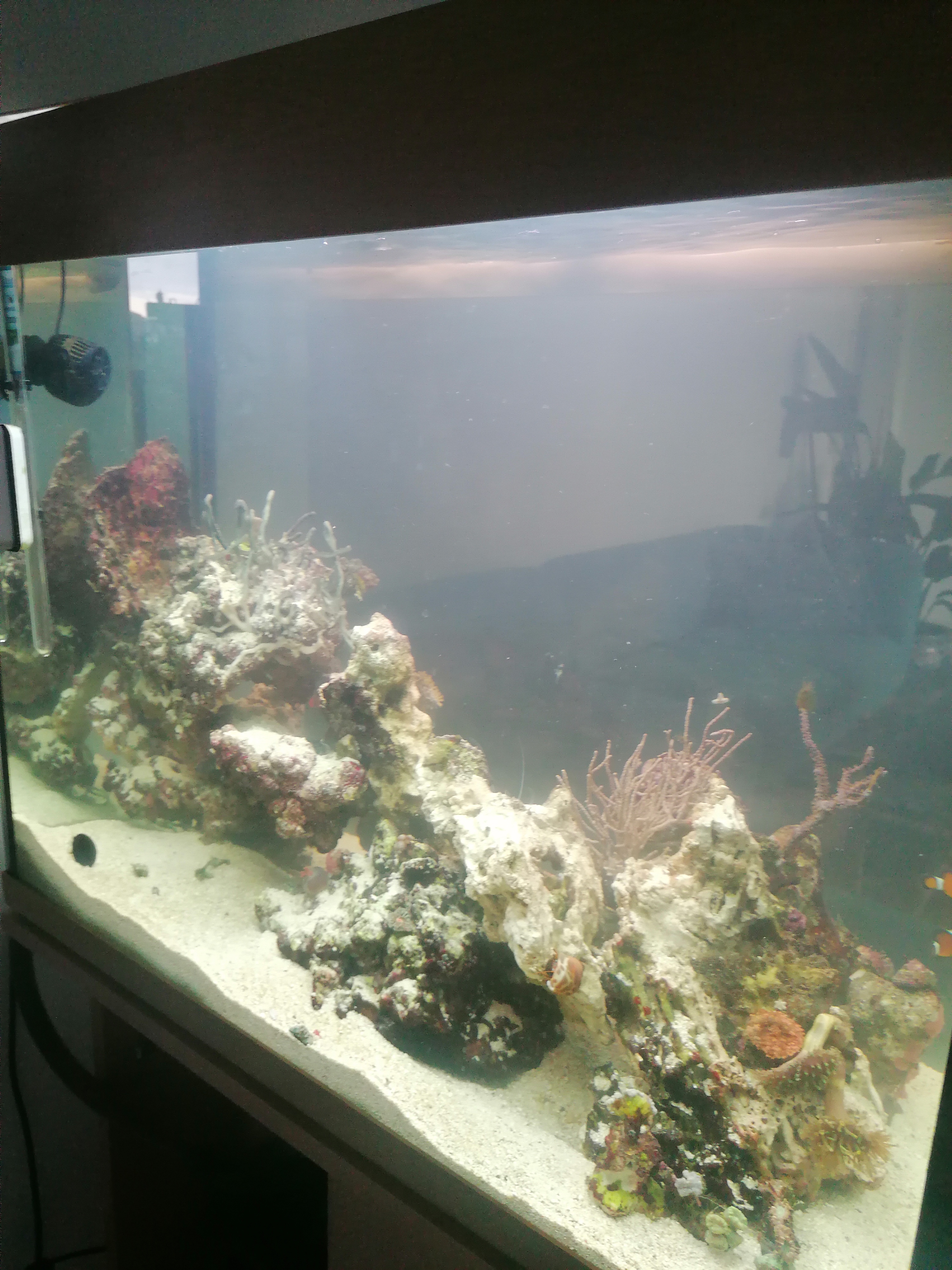 Jeg fandt en majano anemone på den store sten i midten af akvariet. Den skulle ud inden den spreder sig som hos Erik! Så kunne jeg gå lavet en mere luftig sten sætning...