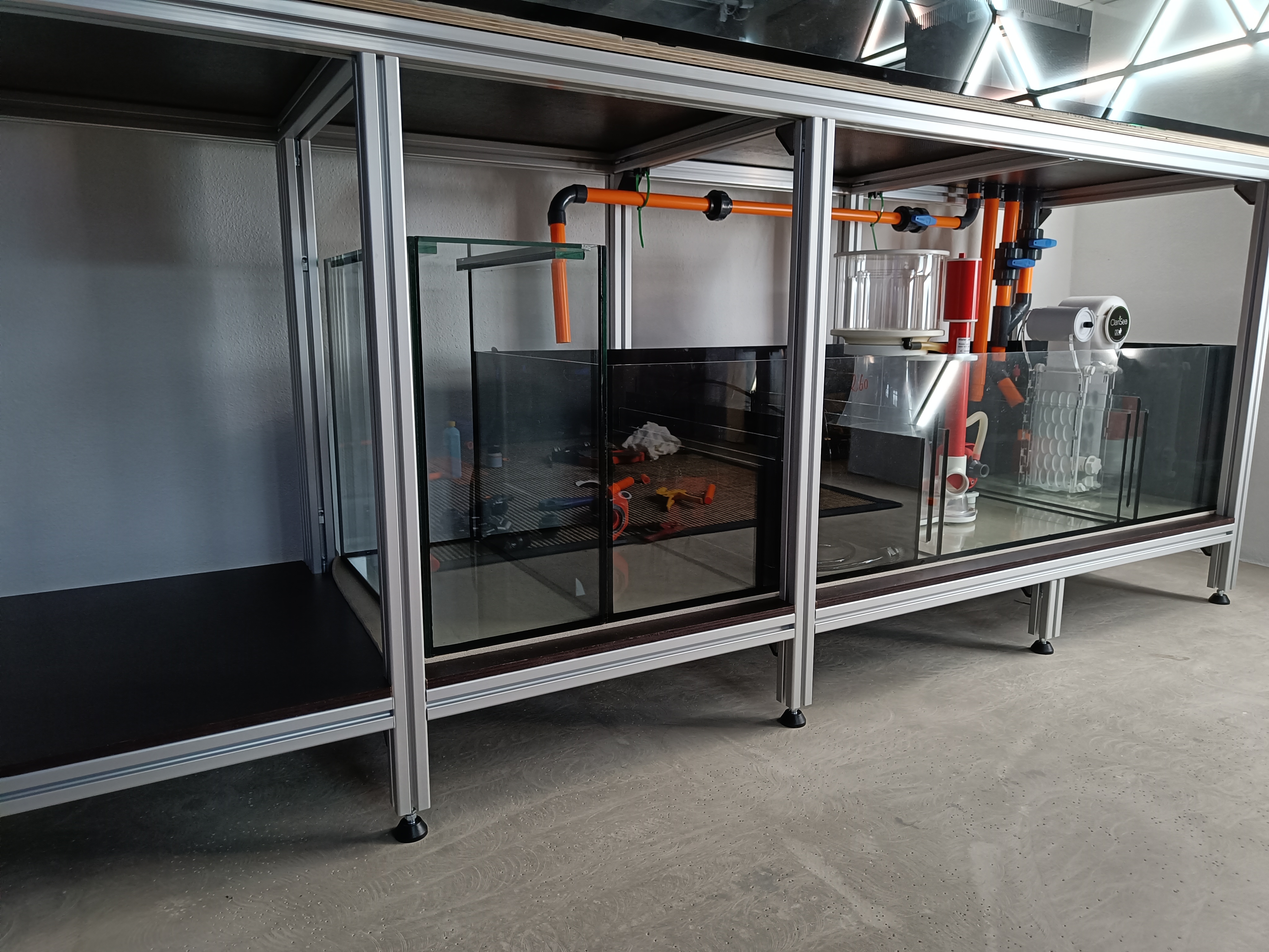 Akvariet som det ser ud nu: En af tankerne har hele tiden været at akvariet skulle kunne køre så selvstændigt som muligt, så længe som muligt.