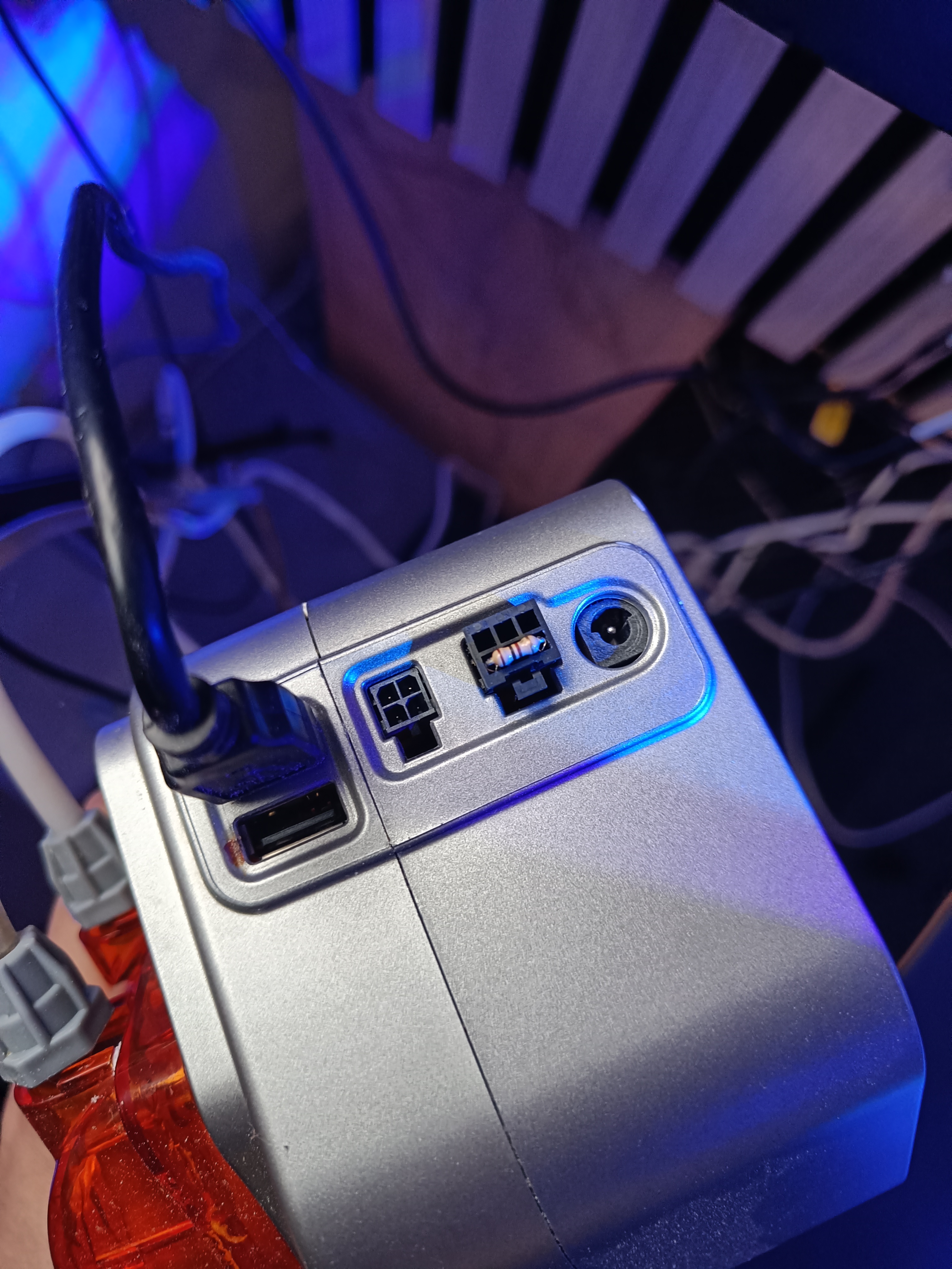 På bagsiden bliver alt strøm med energy bars samt stikdåser monteret. Jeg har DDR beholdere til at stå til mine DOS enheder, jeg er dog kommet frem til at jeg ikke vil benytte disse. Jeg er i bund og grund fint tilfreds med hvordan de ser ud. Jeg syntes dog bare ikke kvaliteten tilsvarer hvad jeg er ude efter. Beholderne er godt nok købt brugt, så hvordan de er behandlet før i tiden, ved jeg desværre ikke. Dog kan jeg ved nærmere kontrol se ir på printet der styre de optiske sensorer.