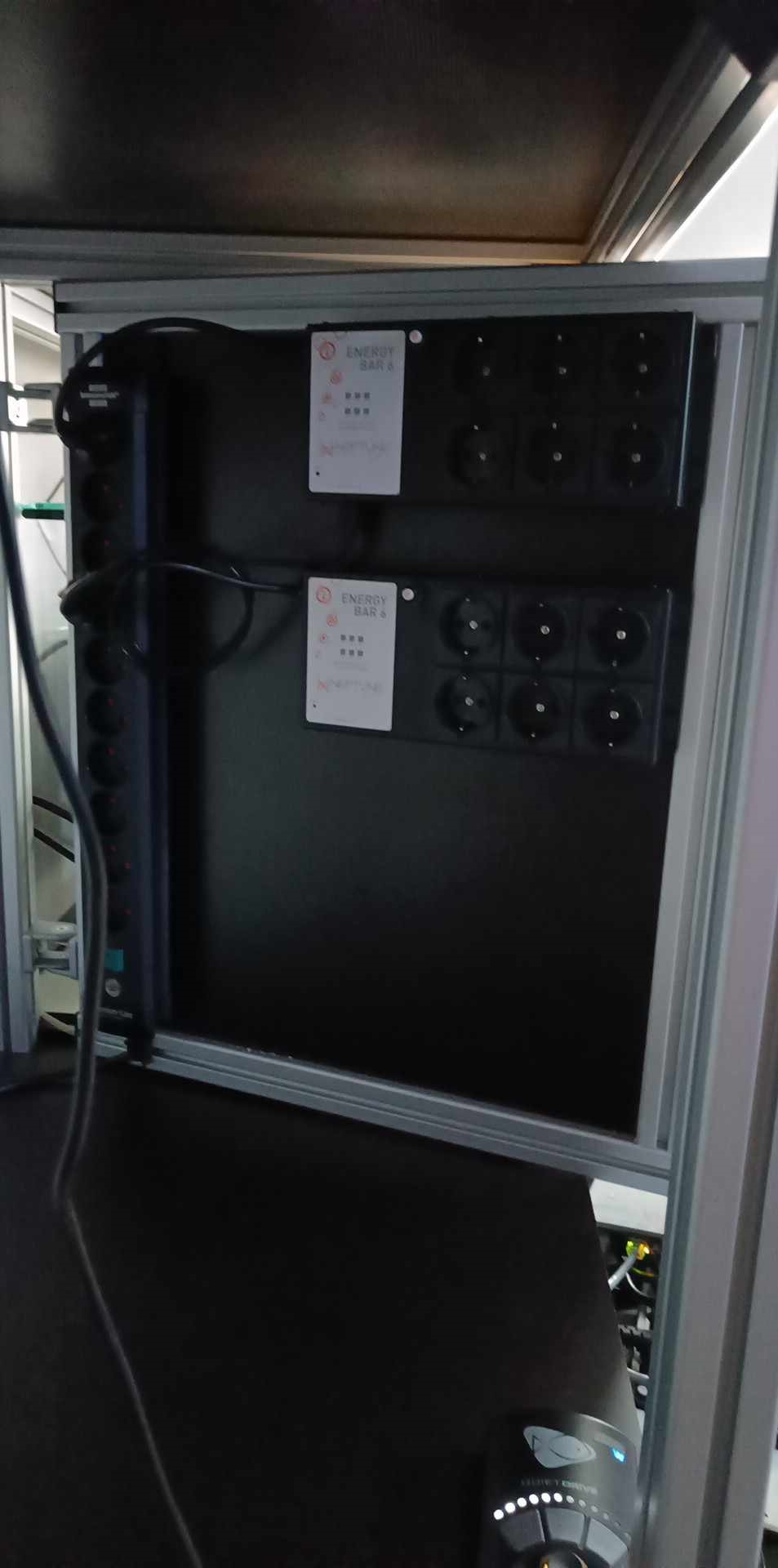 På teknik siden er der blevet organiseret en smule i "teknik skabet" Der er desværre alt for mange ledninger der skal holdes styr på ved sådan et akvarie, og jeg er ikke selv helt tilfreds, men har endnu ikke lige fundet en løsning der passer 100%. På bagsiden af pladen er der fyldt med EB6 samt div strømforsyninger så muligheden for at trække ledninger igennem pladen og gemme på bagsiden er desværre ikke en mulighed. "Teknik Skab"