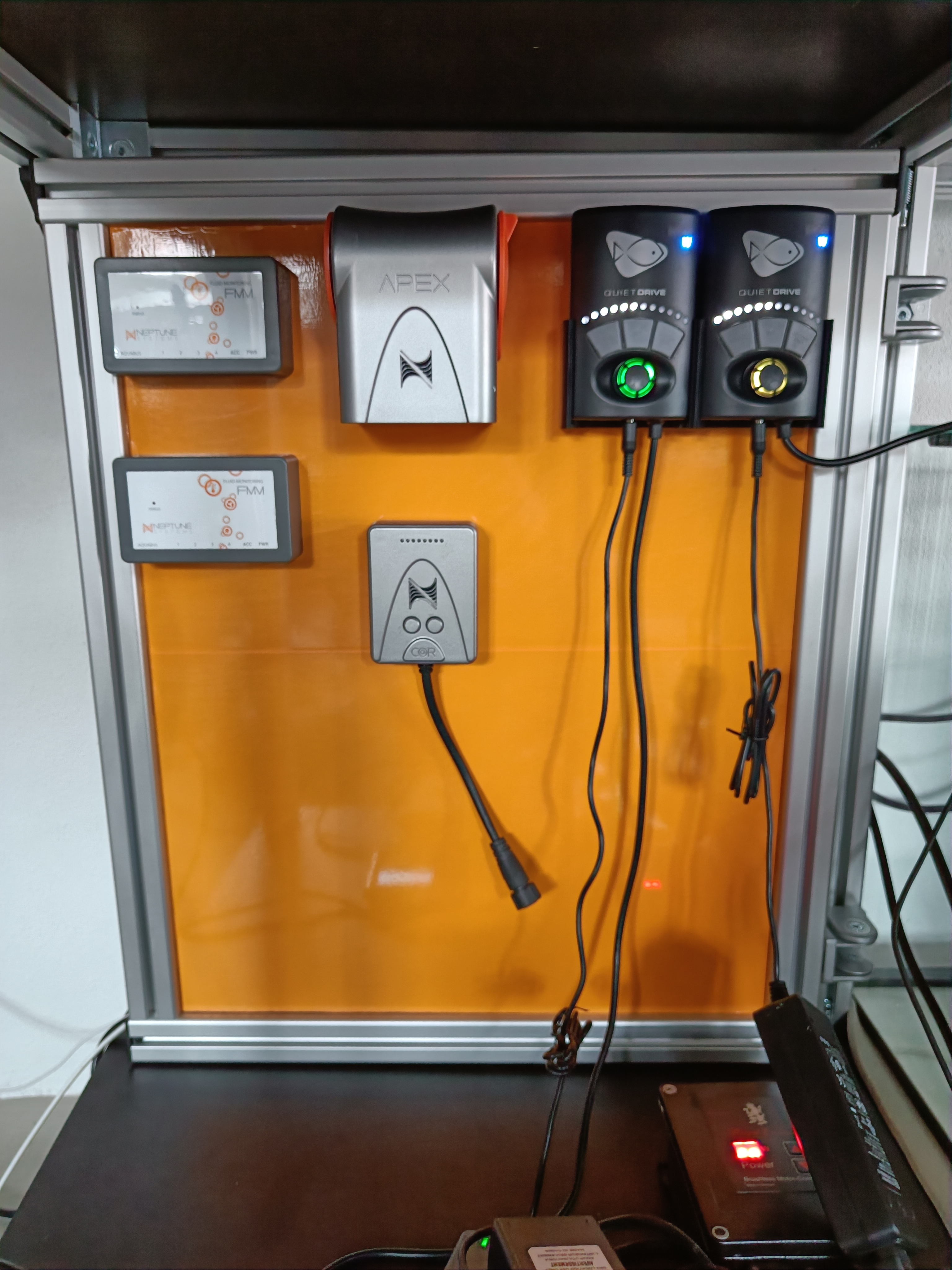Jeg har været igang med at få lavet en plade til montering af udstyr. Jeg påtænker at montere folie på forsiden af pladen, for at forsætte mit orange look. På forsiden bliver der monteret Apex, controller til skummer, controller til retur samt diverse moduler til apex.