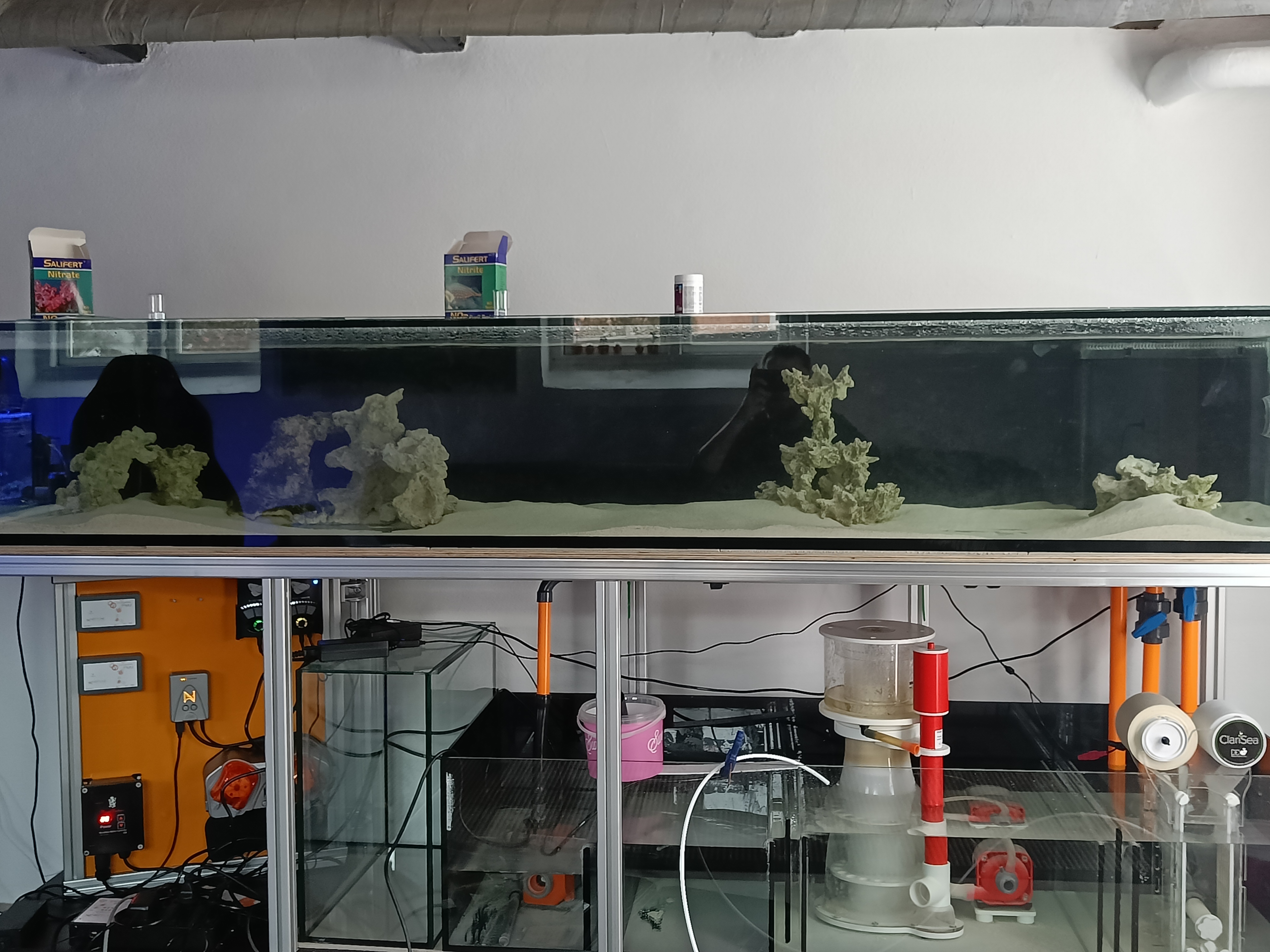 Jeg har i denne omgang fået monteret folie på bagside af display samt på sider og bagside af sumpen. Jeg mangler stadig at få monteret folie på osmose tank. Akvariet er blevet flyttet ind på plads, samt justeret så alt er i vatter, og der ingen spændinger skulle være i hverken akvarie eller sump.