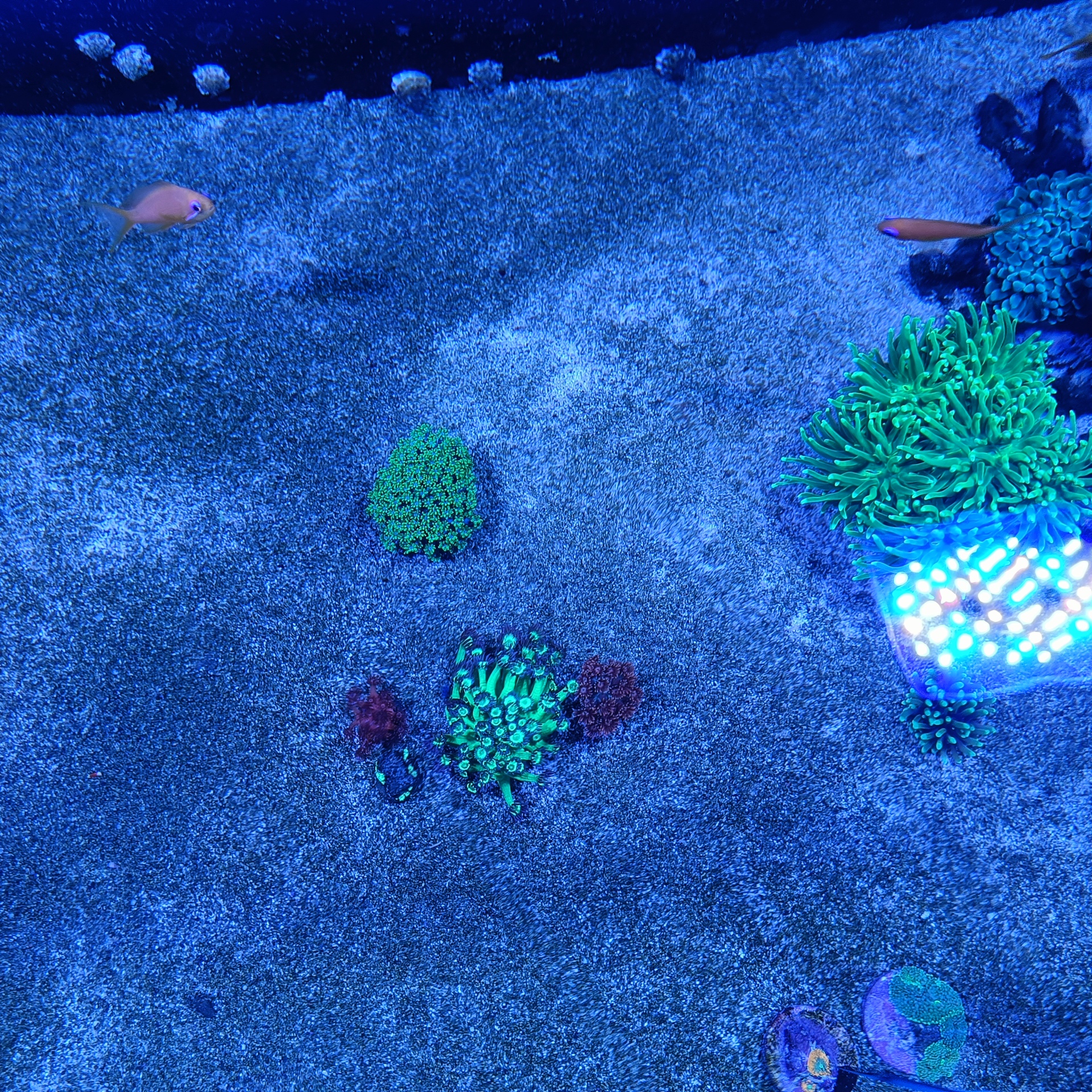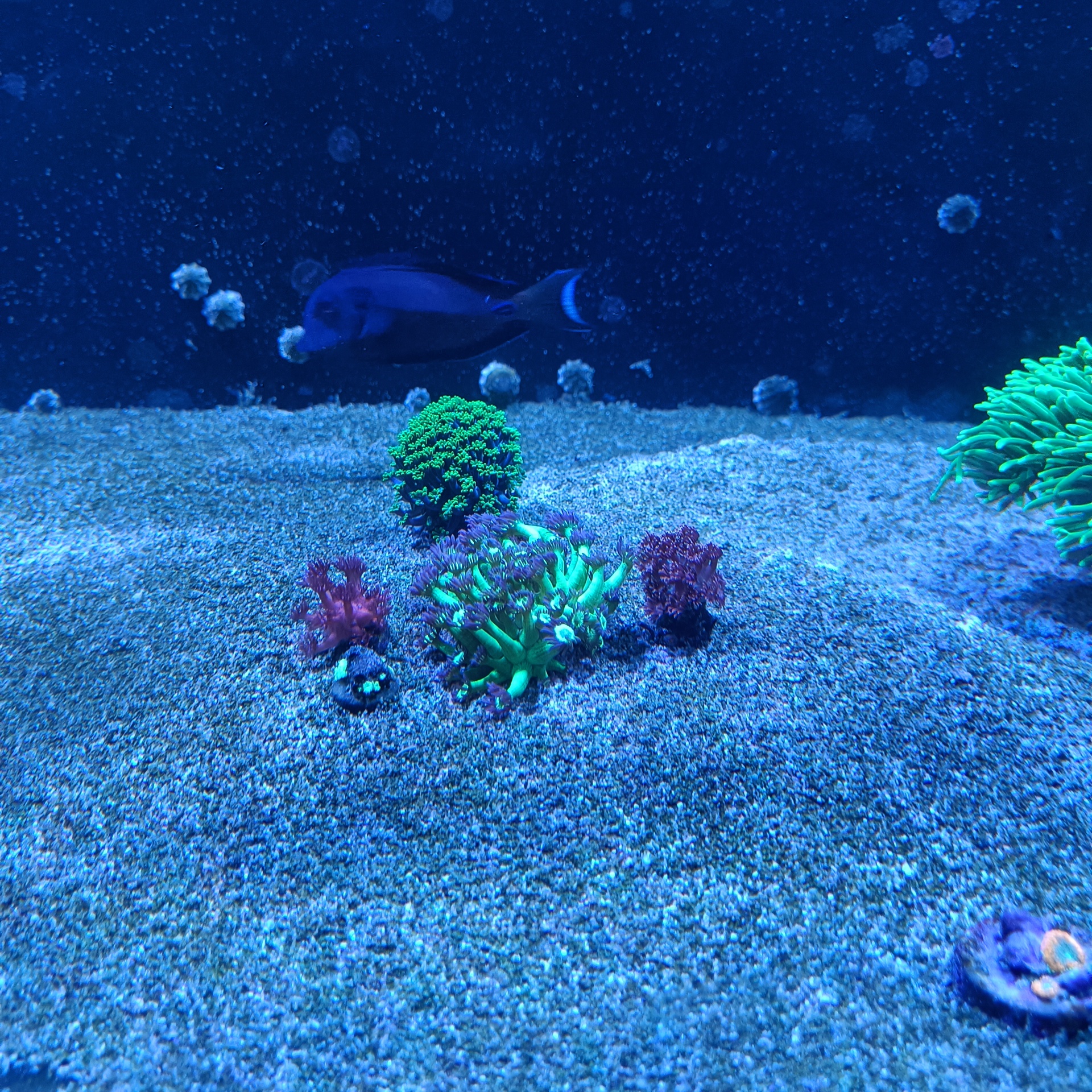 Jeg fik et godt tilbud på et par kirurger samt 4 anthias, så de er så småt ved at finde sig til rette.