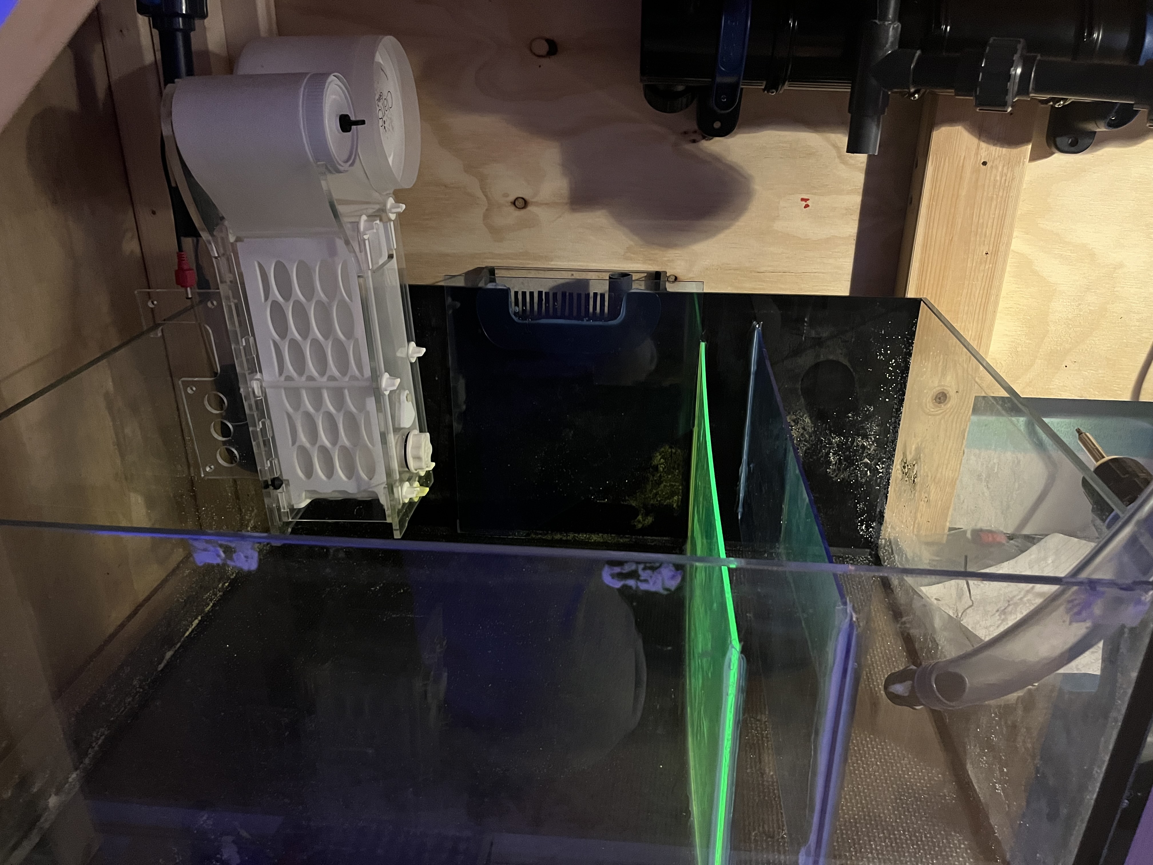 Prøver at bruge min lille shallow balje som sump. Har limet et par akryl plader i som boblefælde til returkammeret.