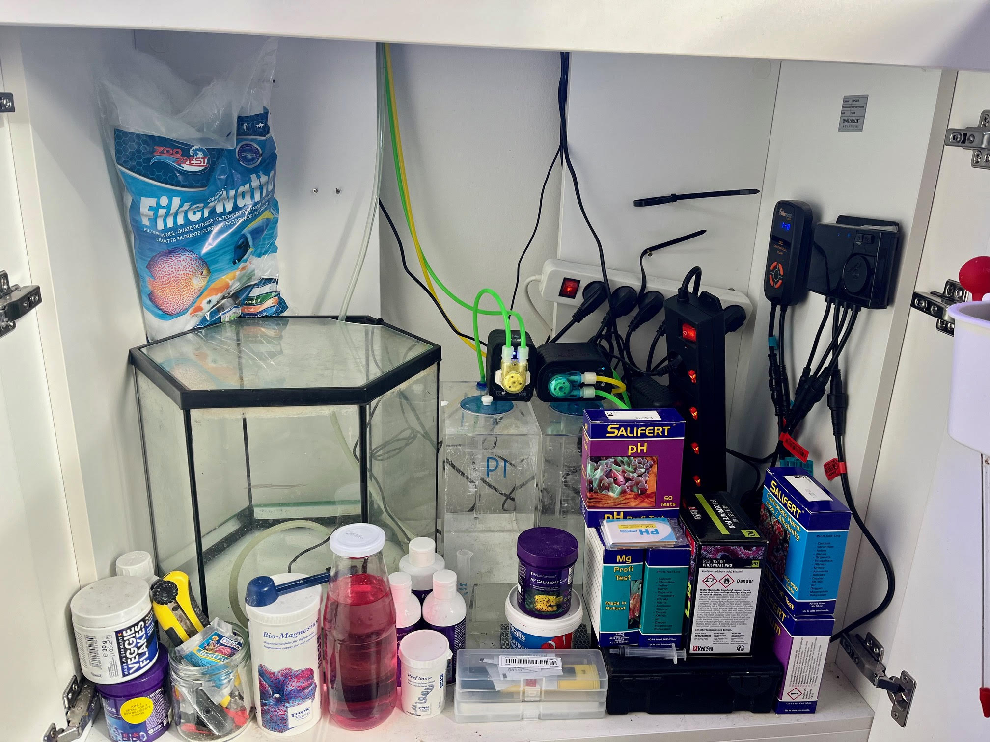 Nu til min saltede historie... Det hele begyndte tilbage i 2015, da min datter insisterede på fisk, men synes ferskvand var lidt for tamt (undskyld til jer, der holder af ferskvand, jeg elsker jer også lidt). Så jeg kastede mig ud i den vanvittigt komplekse verden af saltvand. Efter en del læsning og som passiv tilskuer på saltvandsfora, sprang jeg ud i det. Jeg bestilte en 60L Dennerle-glasboks, som var marine edition (det betød i bund og grund, at der var sand og en overfladskummer med). Men hvad vidste jeg dengang? Jeg var helt grøn! Hurtigt gik det dog op for mig, hvor meget andet udstyr jeg havde brug for. Vigtigheden af det “rigtige” Lys, testsæt, ordet "skummer" dukkede op, levende sten, flow – jeg havde åbenbart ikke sat mig så meget ind i tingene, som jeg troede. Men hey, der var kun én mulighed, og det var at lære det! Så jeg tog på den lærerige rejse, som vi nok alle kender alt for godt.