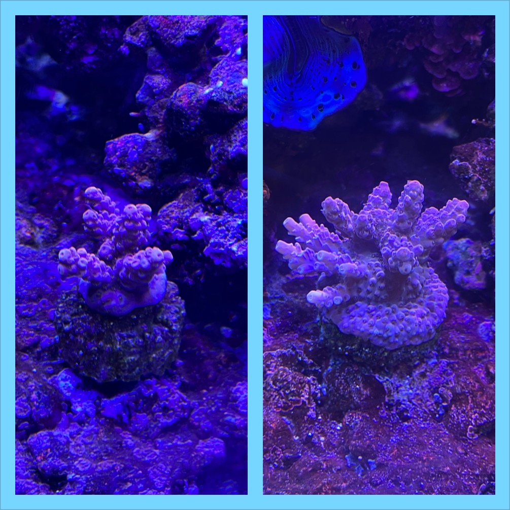 Kan da lige blære mig med mit PH juice projekt her er væksten på min test acro første billede taget d.14/01 og det andet(højre) tager igår.Seniorreefer skrev: man 1. apr 2024 22:15 Spændende med det acropora. Kan vi lige få nogle gode billeder af dem, tæt på