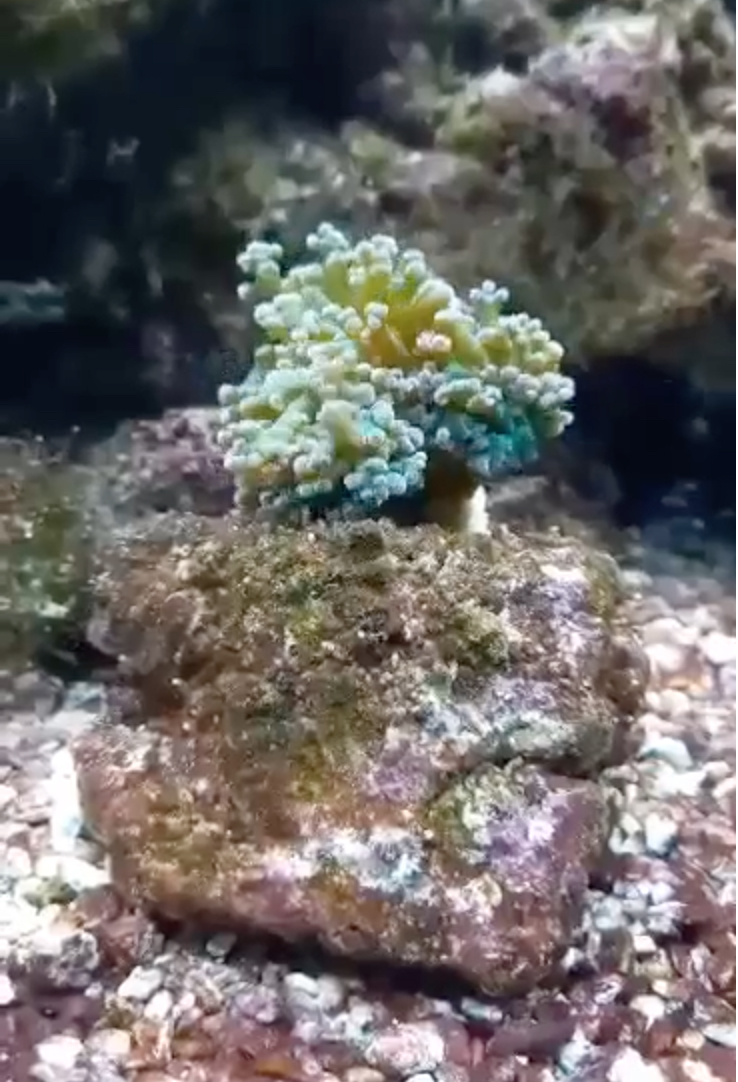 Desuden har han forsøgt at tilføje en LPS frogspawn koral, som efter 2 uger trak sig helt ind i sig selv, og nu nok er død.