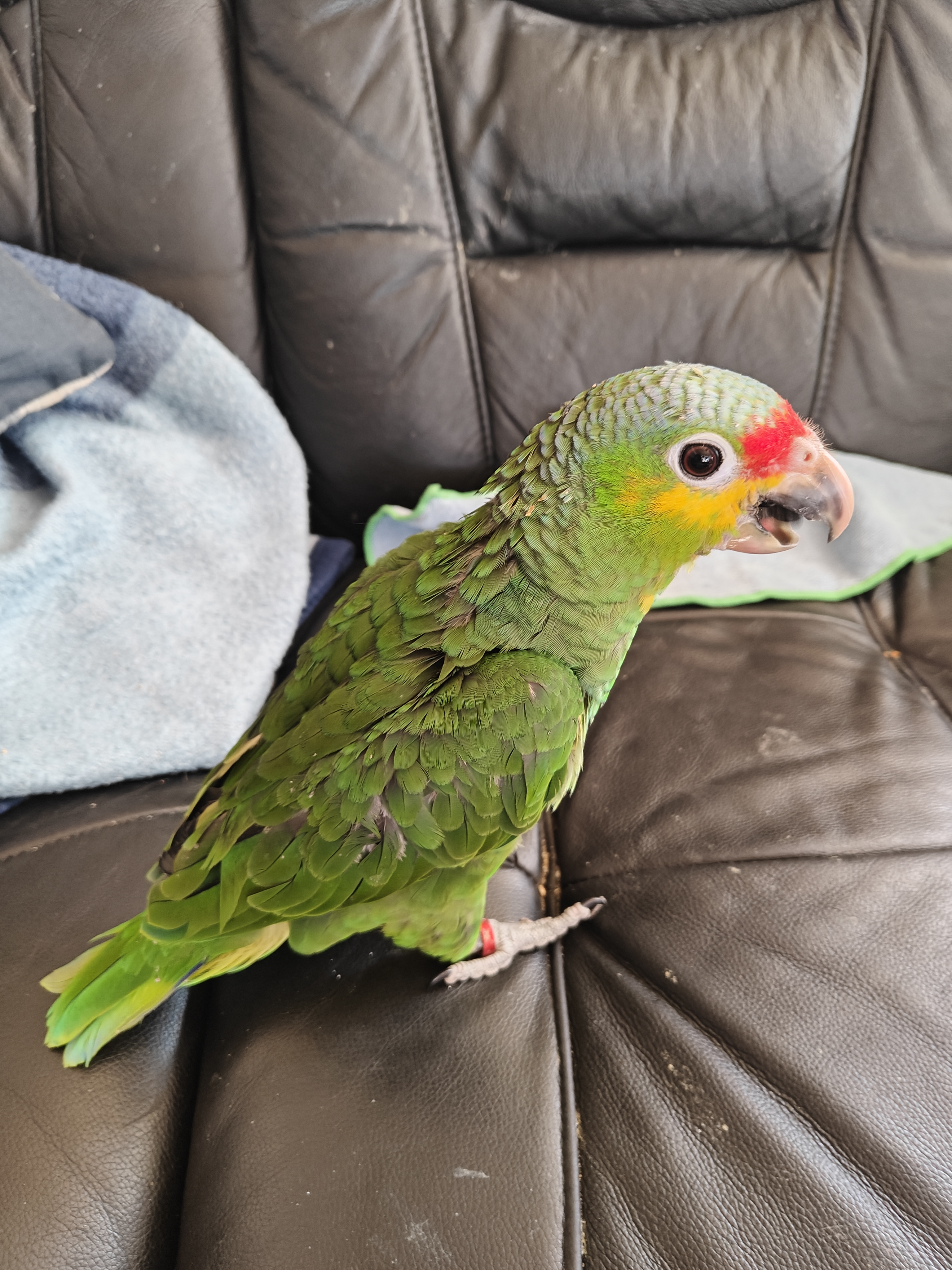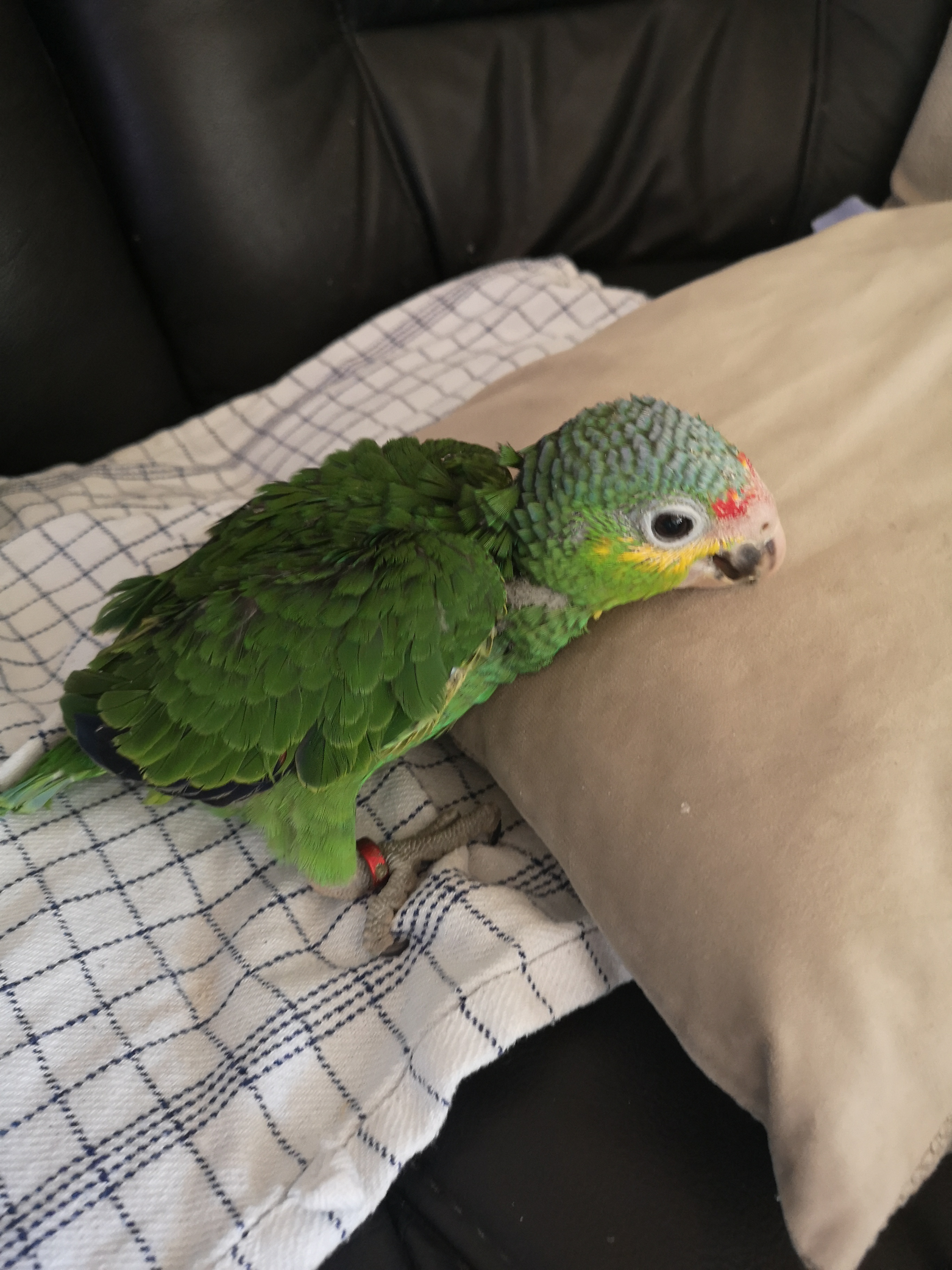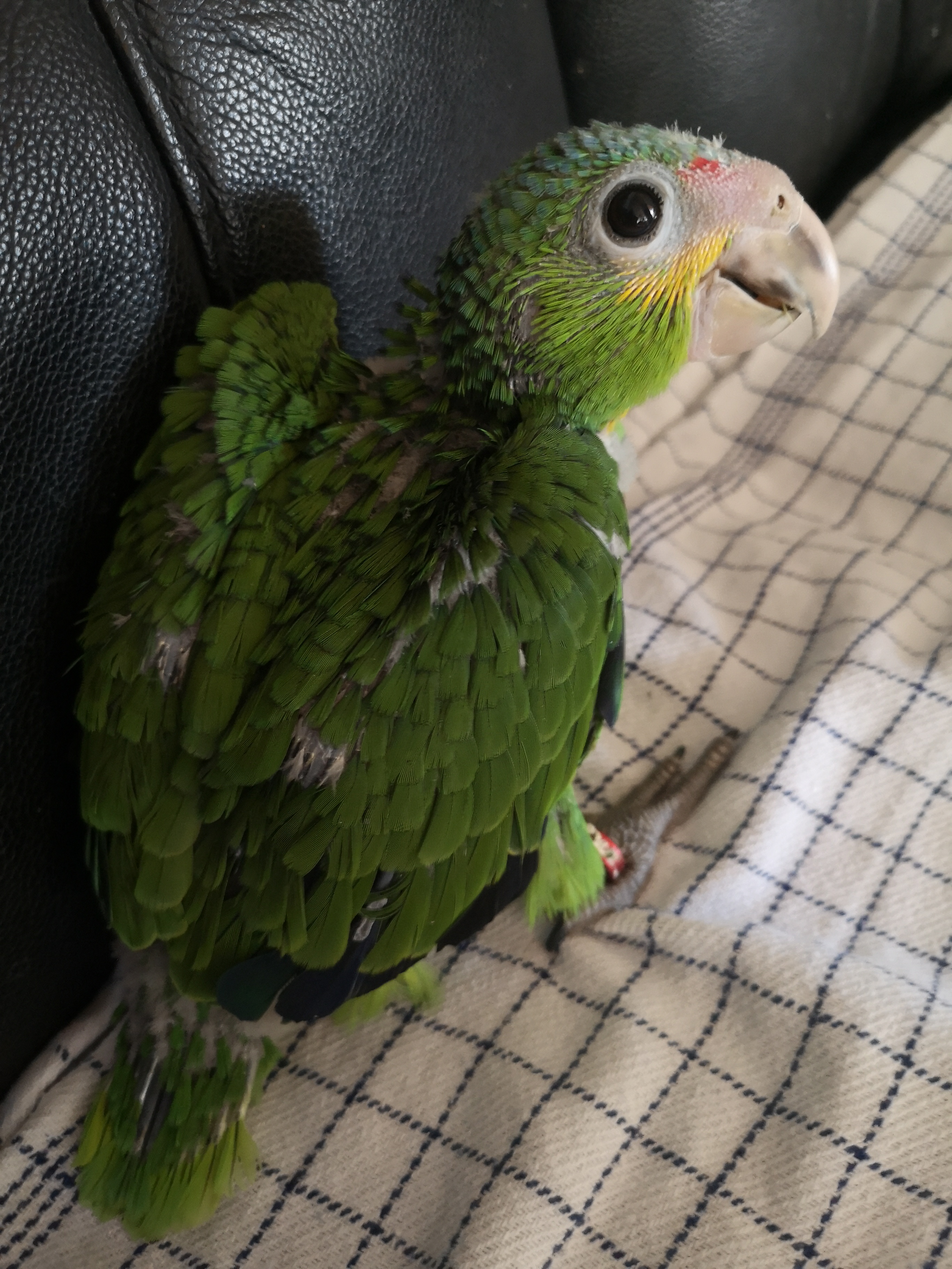 Det er en unge af Gulkindet amazone papegøje, 9 dage gammel.