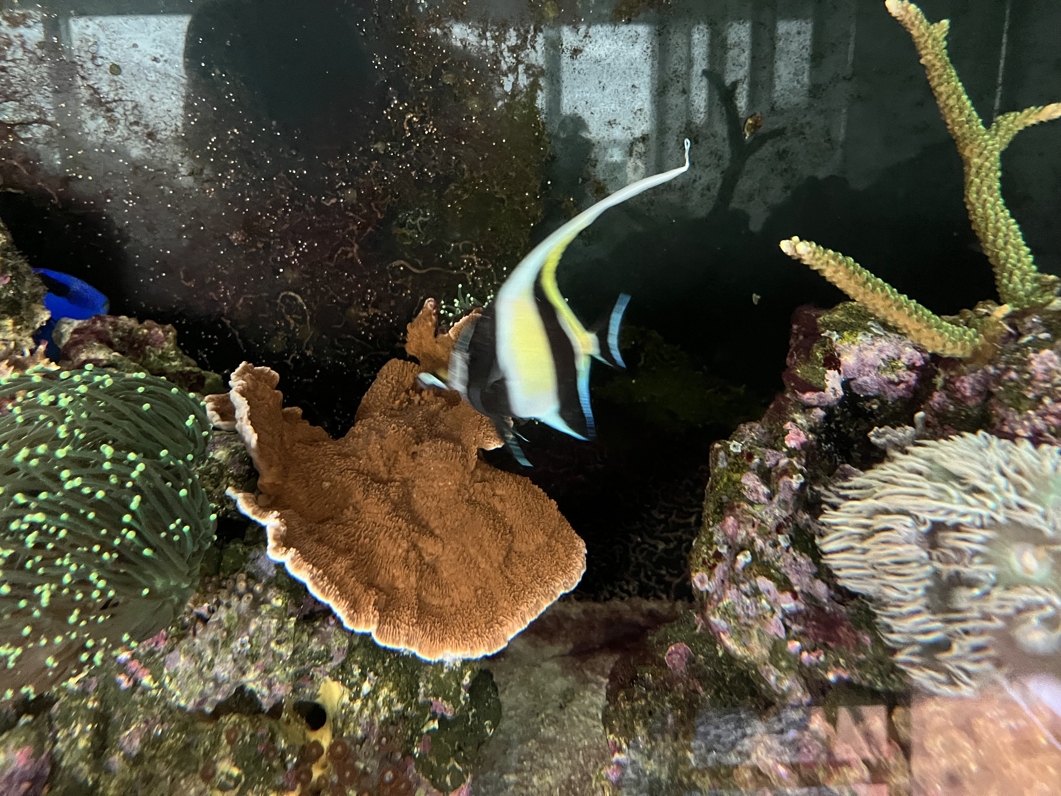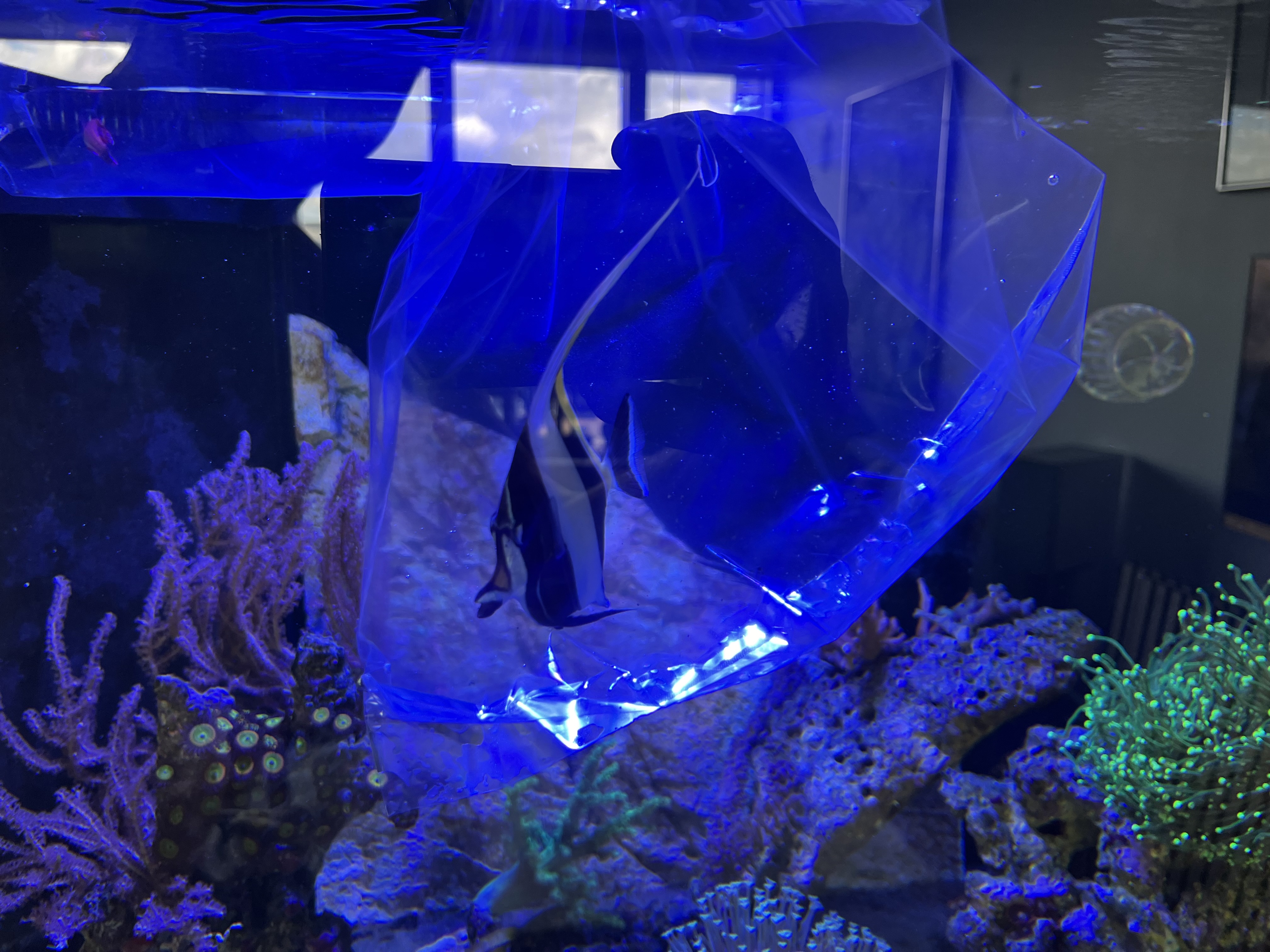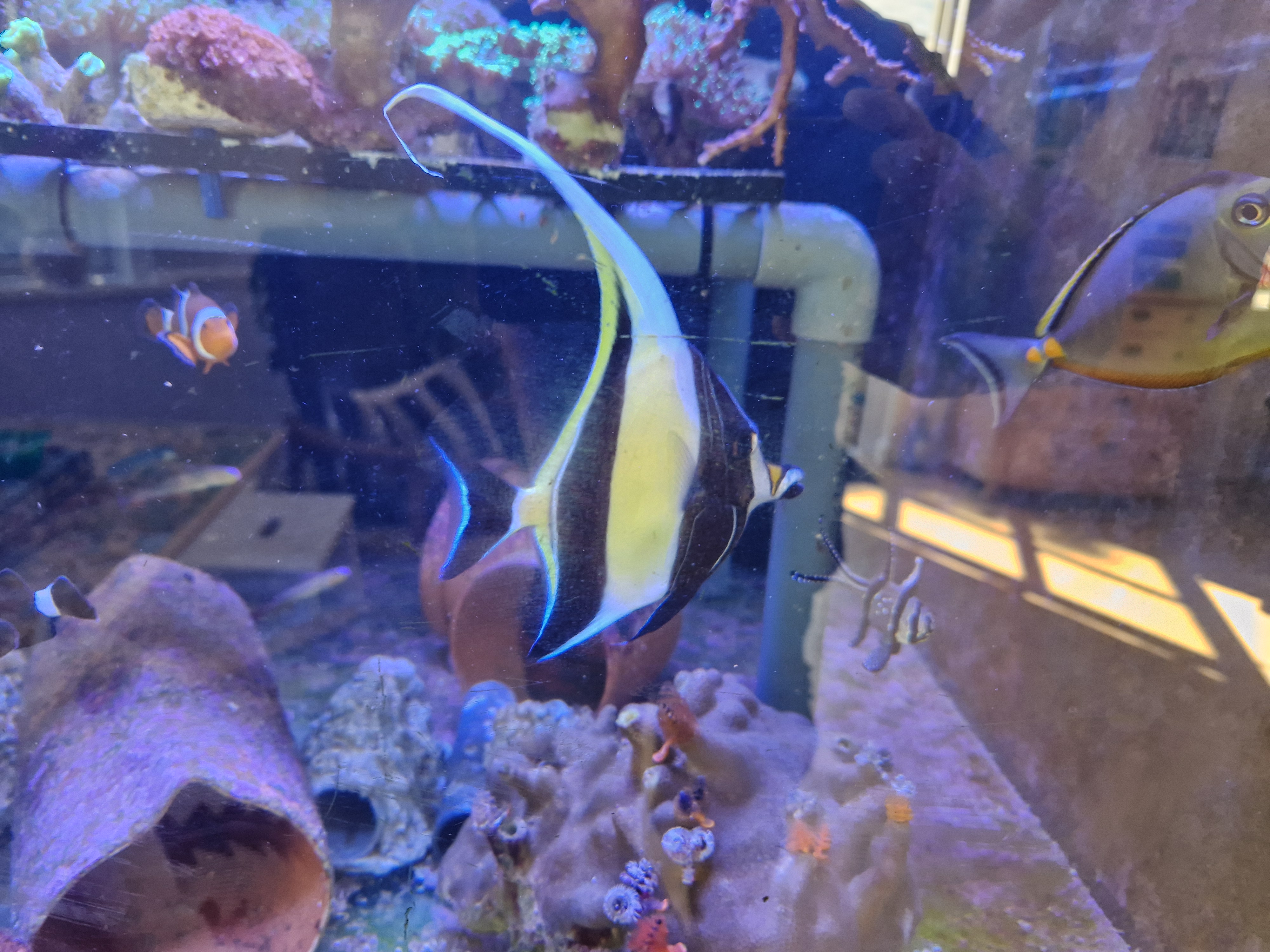 Jeg skilte mig af med sejlfinne kirurg en uges tid efter Moorish kom i baljen. Sejlfinne var simpelthen for “vild” og adhd ramt når der blev fodret, hvilket gjorde det var svært at vænne moorish til andet end Nori tang (blev nød til at sætte tang op 3 forskellige steder på én gang for at Moorish kunne få lov at gå til maden.