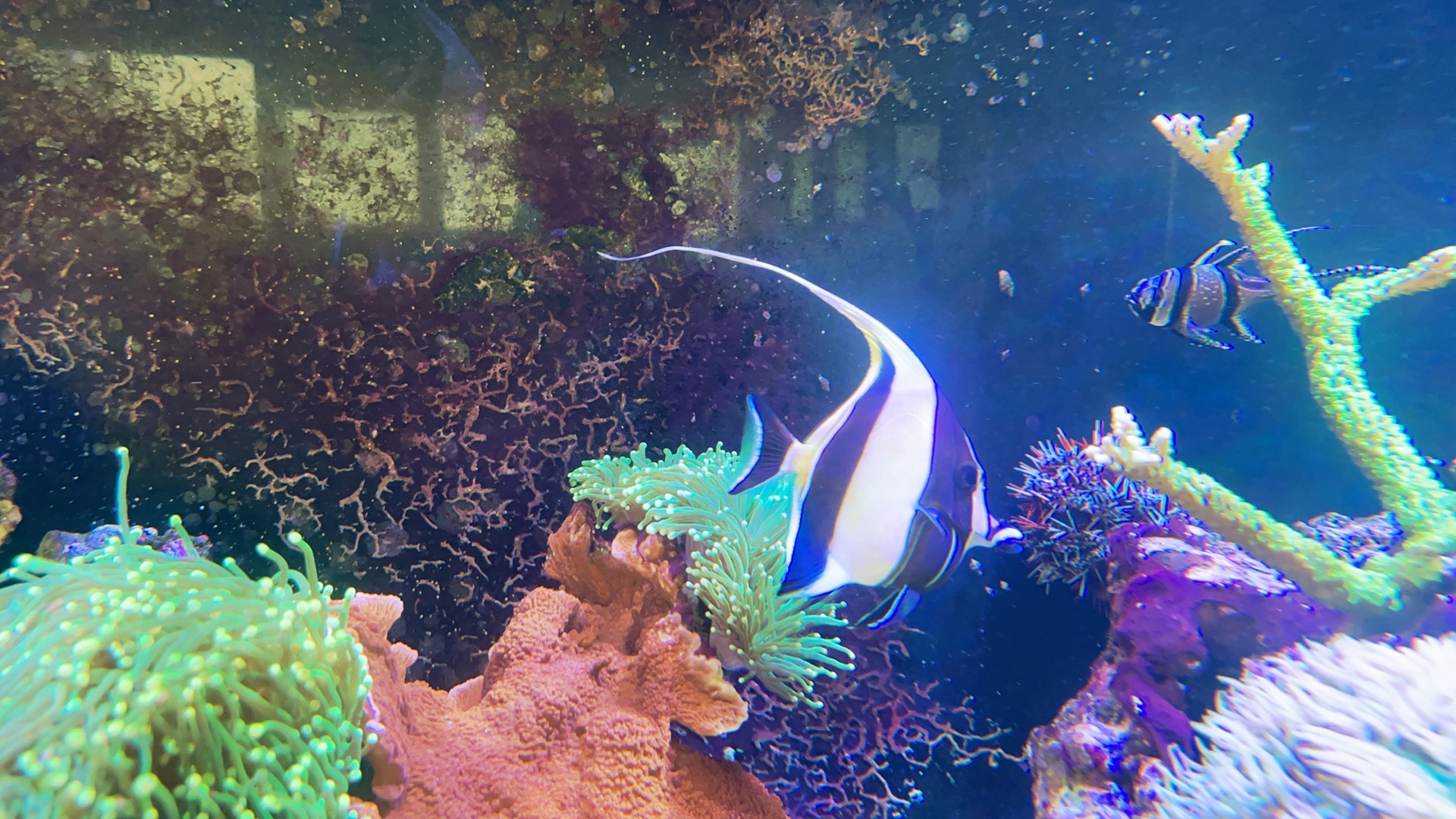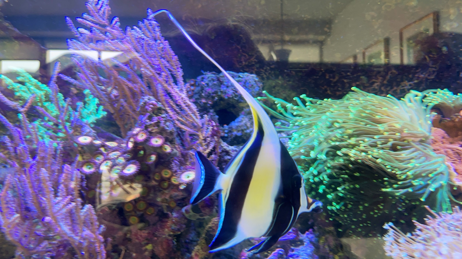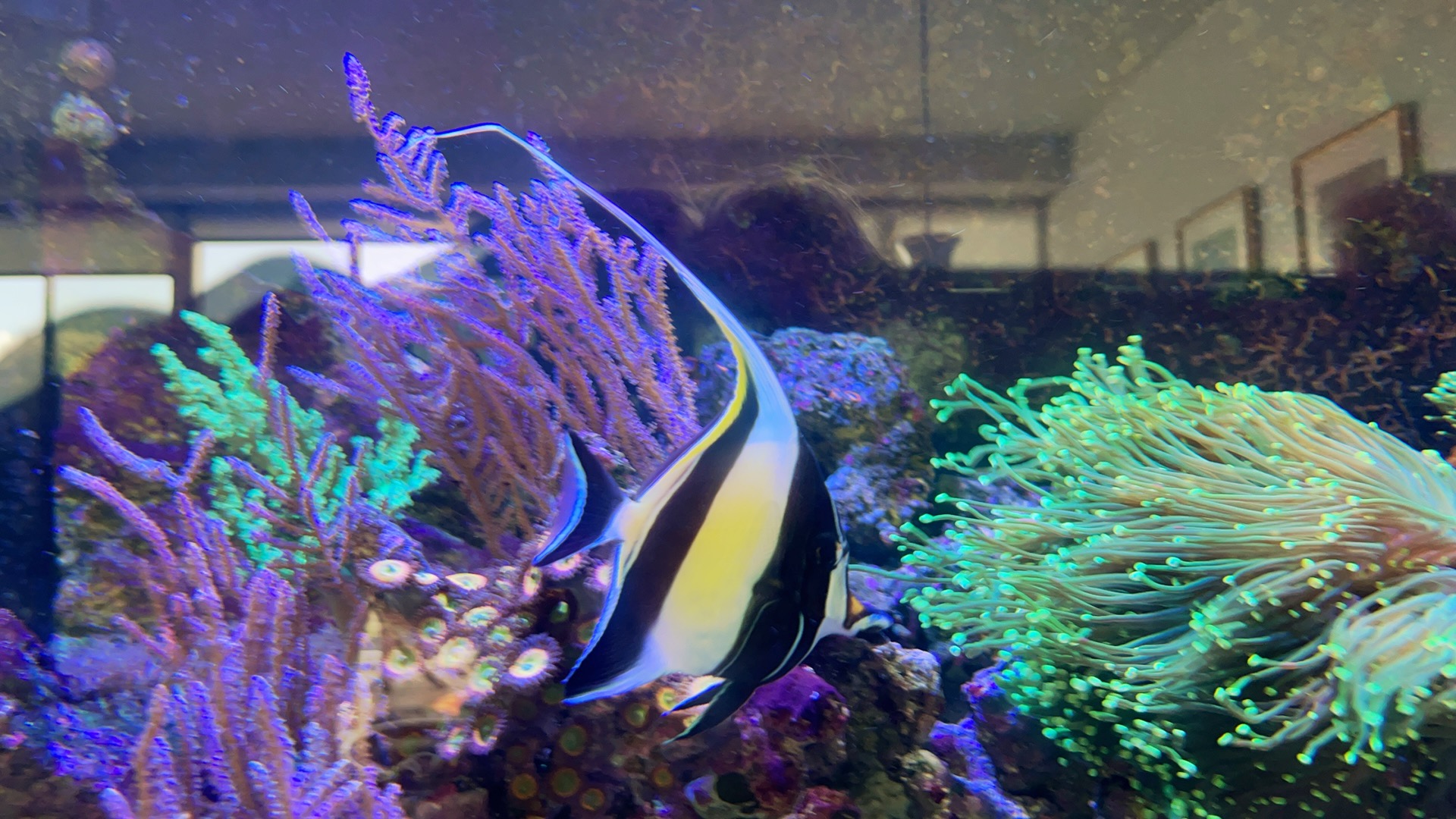 Jeg skilte mig af med sejlfinne kirurg en uges tid efter Moorish kom i baljen. Sejlfinne var simpelthen for “vild” og adhd ramt når der blev fodret, hvilket gjorde det var svært at vænne moorish til andet end Nori tang (blev nød til at sætte tang op 3 forskellige steder på én gang for at Moorish kunne få lov at gå til maden.