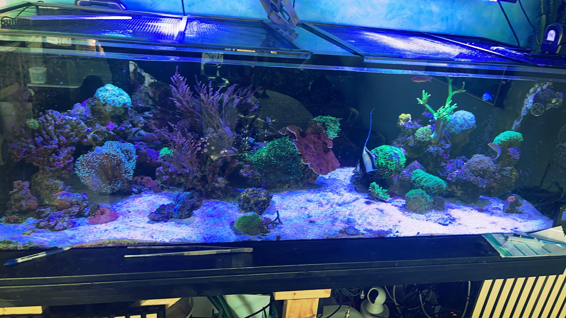 450 liters tropeakvarium m weissglas i front og sider, skab fra Tropeakvarier. Lys maxpect RSF 300. Retur Octo 2. Cirkulation: Vortech 2xmp40Skummer Octo 250. Osmolator: Ato Duo. UV Deltec uv 39