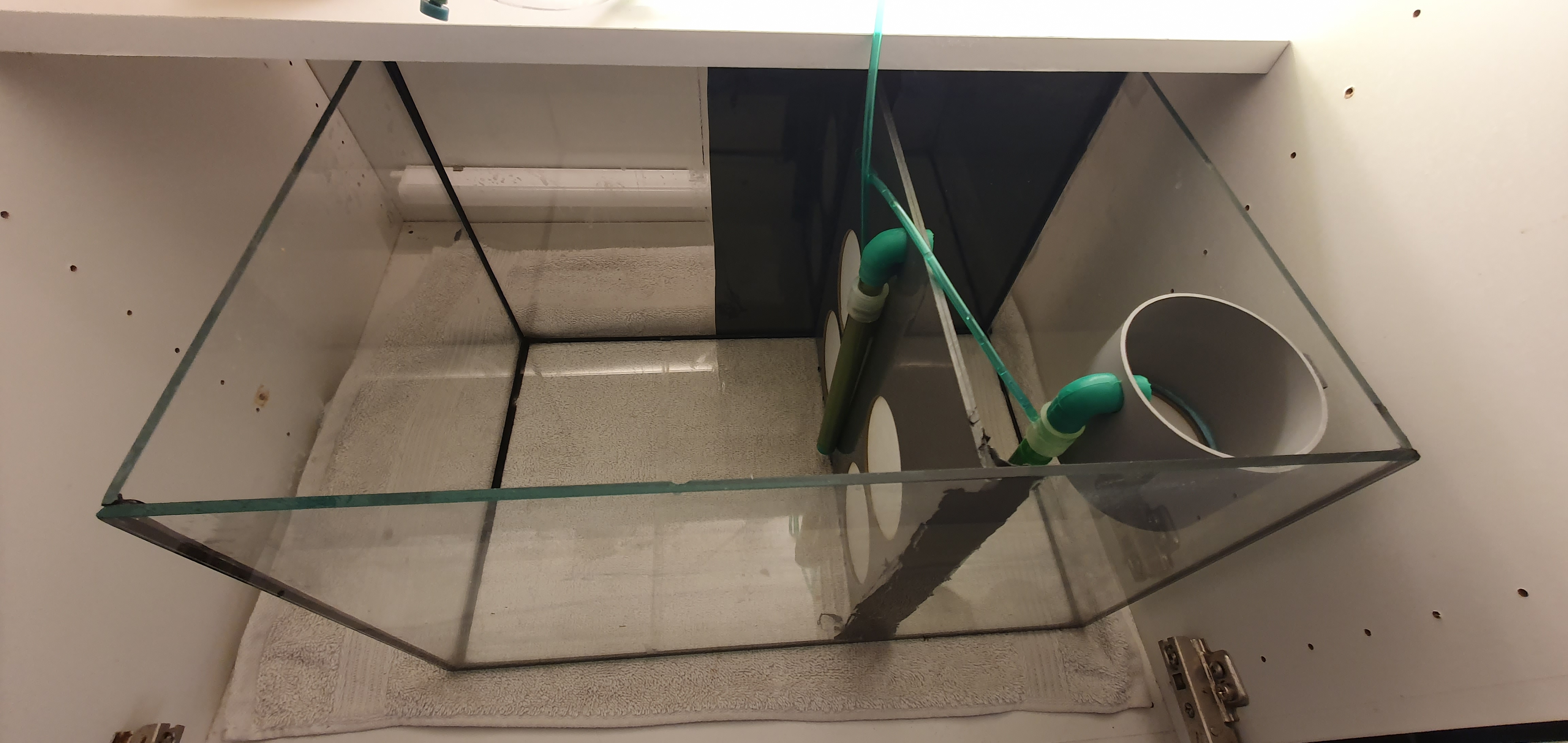 Under har jeg en 50 liters regnvands beholder, med slat på 35ppm og F2 gødning. I denne har jeg tidligere haft en luftpumpe men jeg er ret sikker på at det er for lidt cirkulation så det skal jeg have opgraderet.