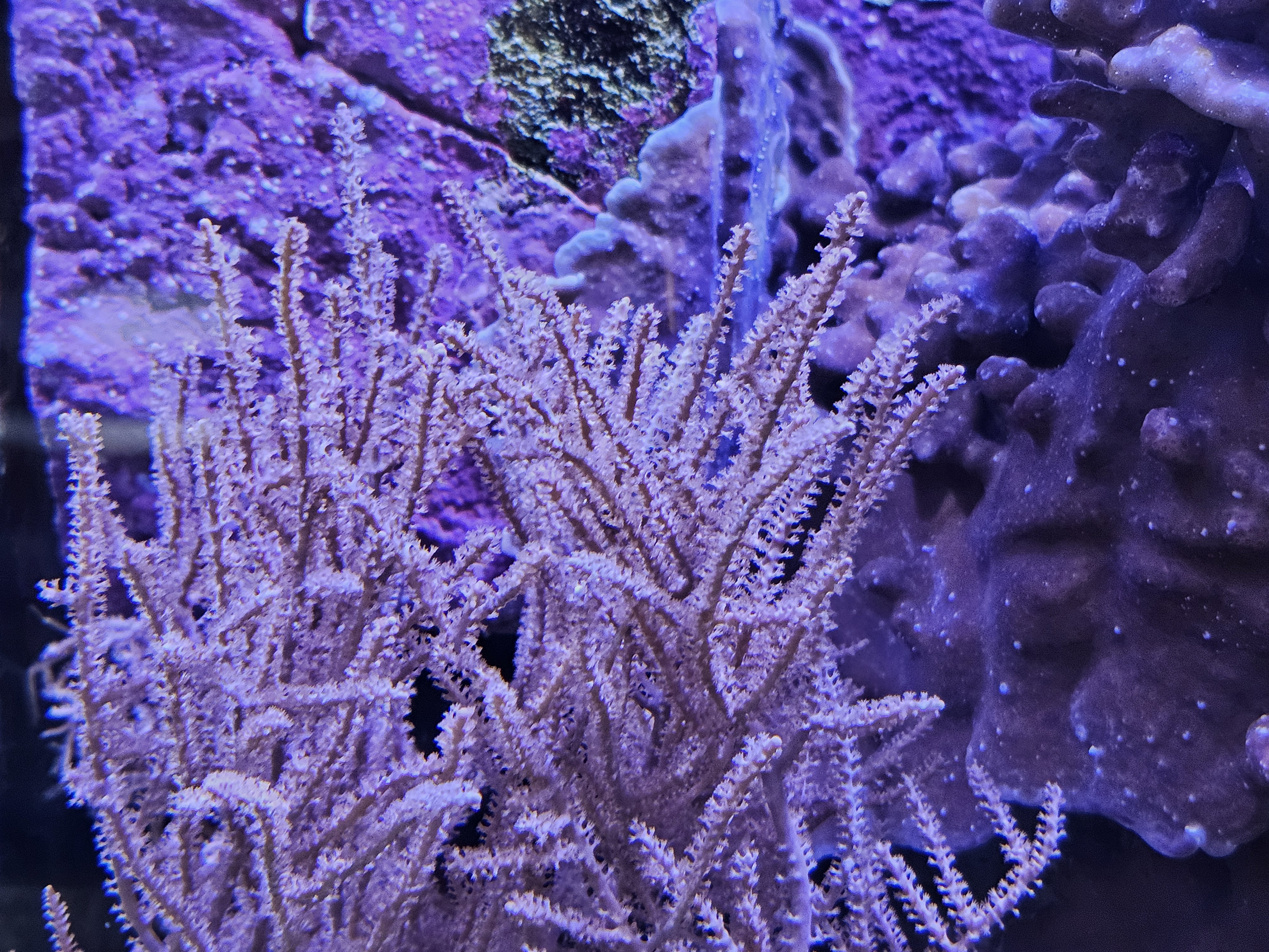 Har kørt i ca. 6 år og har masser af koralvækst og lilla kalkalger.