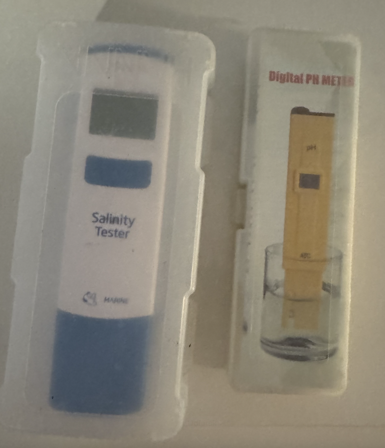 Derudover er der en salinity checker og ph måler (skal have nye batterier) - kom med bud på dette, hvis du kan bruge det