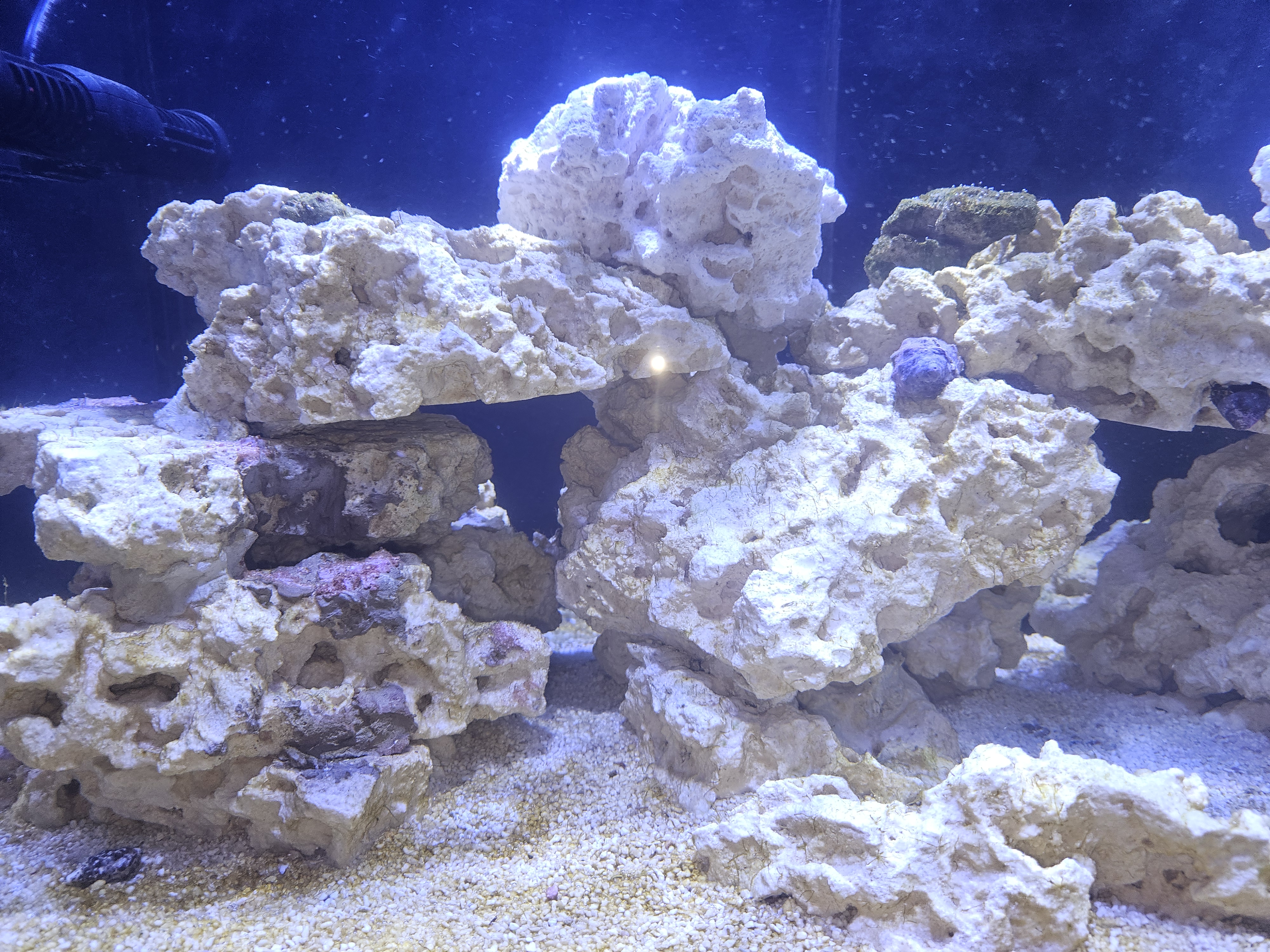 Det samme var jeg ude for i mit allerførste saltvandsakvarie. Det var sat op med koralskeletter og kalksten som dekoration. Selv med lys 24/7, stod det fuldstændig sterilt. Ingen alger, heller ikke på ruderne. Vi er tilbage midt i '70 erne. En garvet saltvandsmand, der boede tæt på mig sagde " gå ned i et af bedene bag højhuset ( boede i Høje Gladsaxe). Gå ind i mellem buskene, så der ikke er pis og kattelort og tag en smule jord i en bøtte. Hæld saltvand i og ryst det grundigt. Det hælder du i." Og så skal jeg love for at der kom alger.