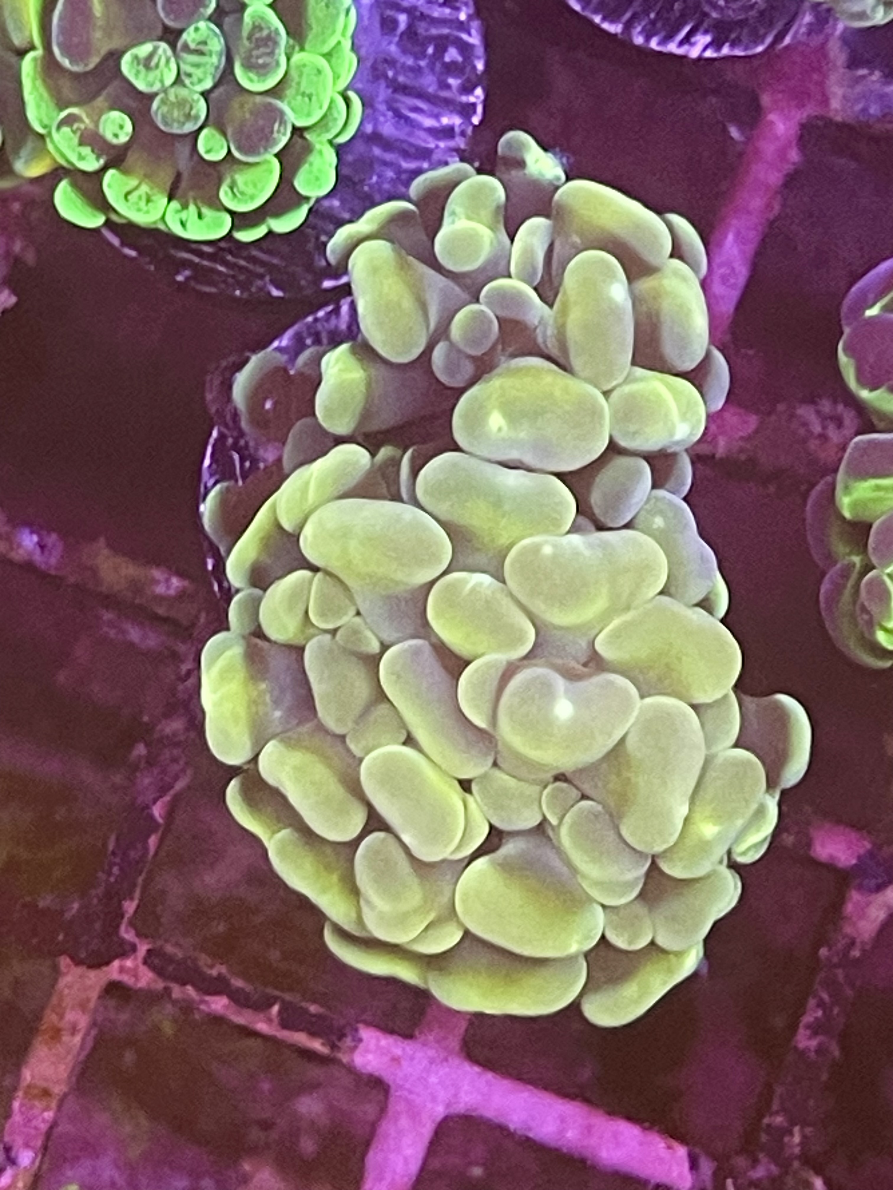 Ofte ser vi korallen i en grøn/blå variant men som du kan se her findes den i en masse flotte farver og varianter.