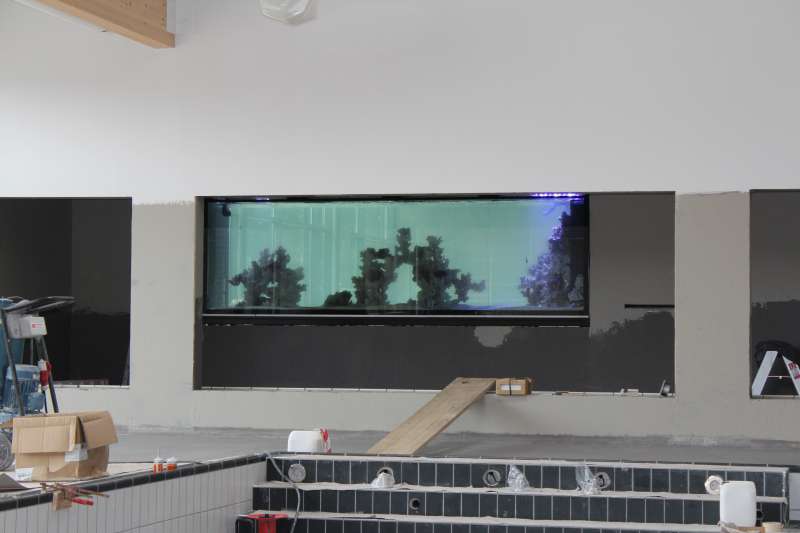 som lovede, her lidt billeder af akvariet. Akvariet kan ses fra 2 sider, spa siden og svømmehalssiden.