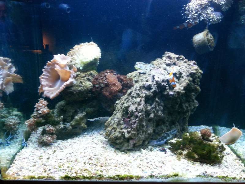 Bio-Load2x kardinaler, 1 Shelly lightfoot- og 1 stenkrabbe, 1 kutling, 1 sandshifter søstjerne, 1 søpindsvin, 2 turbo-snegle, 2-4 cm levende sandbundlag. En af de tykke lyserøde snegle der vælter ned fra akvariesiden igen- og igen... :K