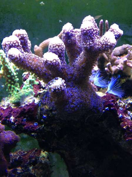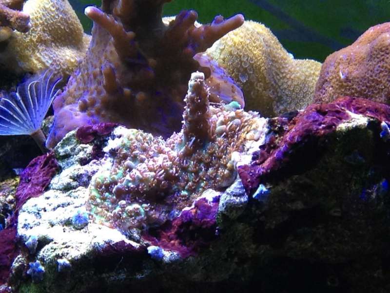 Desværre mistede jeg næsten alle sps i sommeren 2011. Vi tag afsted til Thailand, men allerede 3 dage efter vi var taget afsted skrev min akvariepasser til mig at min sps’er var ved at dø. Desværre viste det sig at da vi kom hjem var næsten alle SPS væk og det, der ikke var døde resten i løbet af et par uger. Jeg fandt aldrig ud af hvad, der skete, men min teori er at de sultede ihjel. På daværende tidspunkt fodrede jeg kun med flagfoder og havde altid Nitrat på 0 og fosfat på 0,00. Siden da har jeg fodret med reefpearls og aminosyrer og mine LPS står og vokser bedre end nogensinde