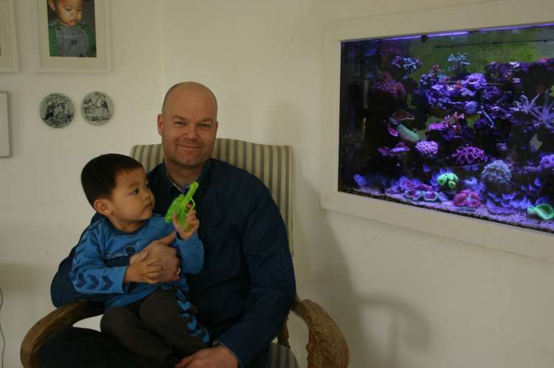 Efter ca. 1 års tid med 470L fik jeg endelig overtalt konen til at flytte akvariet i stuen, der desværre resulterede i en nedgradering. Efter ca. 6 måneder som fritstående besluttede jeg mig for at bygge akvariet ind i væggen og det er kørende i dag.