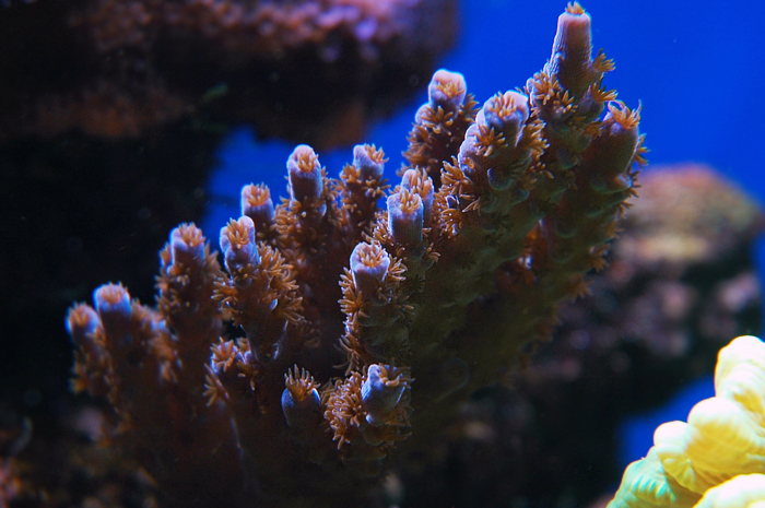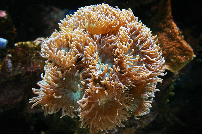De eneste koraller jeg fodre, er Tubastrea og Acanthastrea, som altid er friske på lidt natmad.