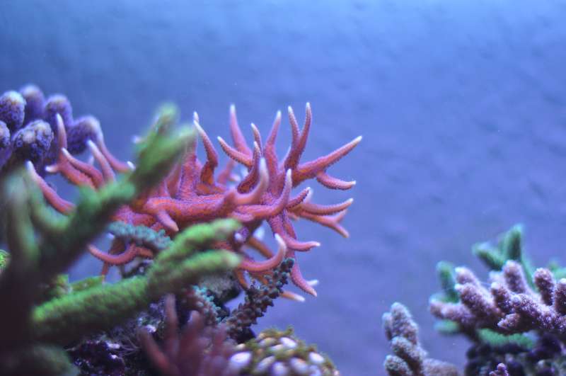 Herudover har jeg lidt en plage ift. søstjerner. Jeg har oplevet, at Asterina sp. har formeret sig enormt meget, og hver gang jeg skifter vand, suger jeg så mange op som muligt, men det er en umulig kamp at komme dem til livs. Jeg forsøgte mig med en Thor amboinensis til at tage søstjernerne, men måtte erkende, at selv om man synes, man er garvet og har styr på tingene, så kan man let lave fejl - det var selvfølgelig en Hymenocera elegans, jeg skulle have haft.