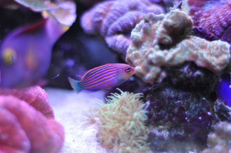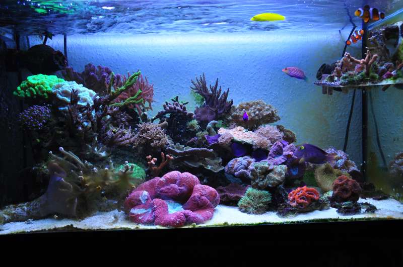 Vandskifte kører rimeligt. Jeg forsøger at gøre det én gang om ugen, men efter vi blev forældre for anden gang, kan jeg godt mærke, at der bliver droslet ned for det. Det er helt tydeligt, at korallerne nyder at få et vandskifte en gang om ugen, og at mine værdier ligger bedre, når jeg jævnligt skifter vand. For øvrigt har jeg altid lavet store vandskifte i mine små akvarier, da jeg havde det lille 64 liters, var det næsten 70 % hver gang, nu er det ca. 20% pr. gang. Det har jeg altid haft gode erfaringer med, men som en god kammerat/mentor siger "stability provides succes", så det er klart at foretrække.