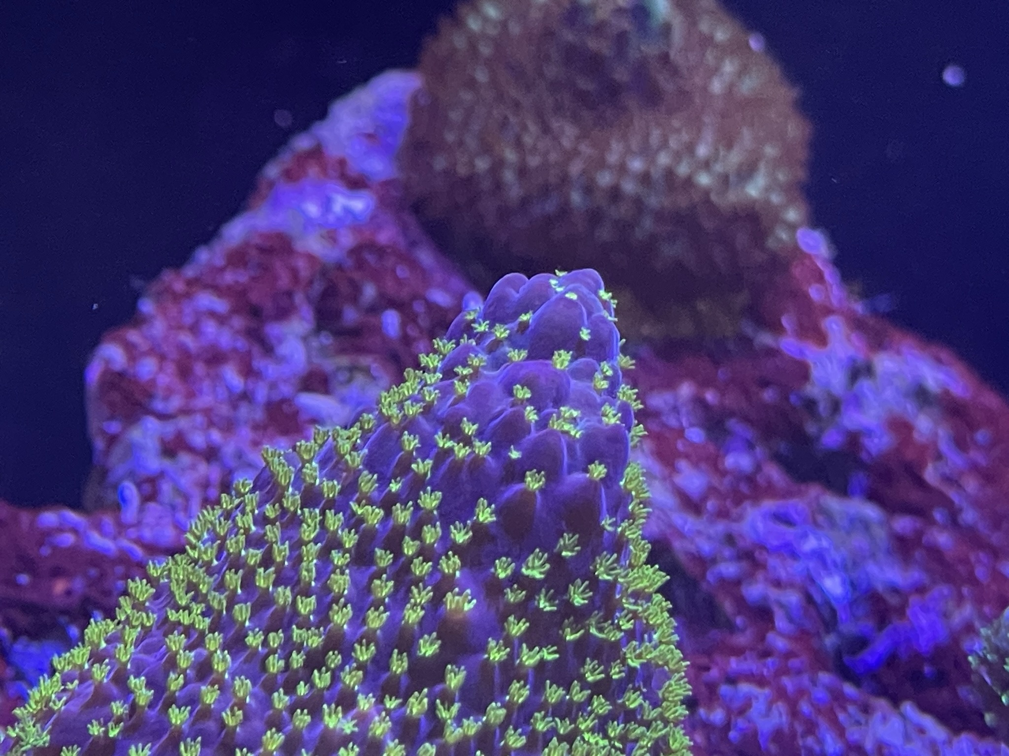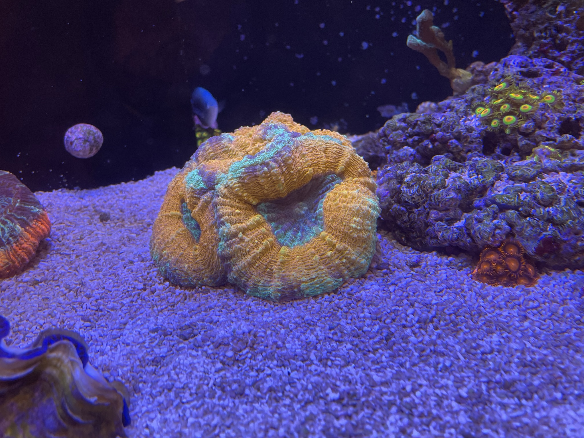 Min har aldrig formået at få farve.. men tror lidt det er fordi mit søpindsvin har en fetish med at hente koraller og smide dem lige midt i den. Som om den er en tallerken der skal fyldes..
