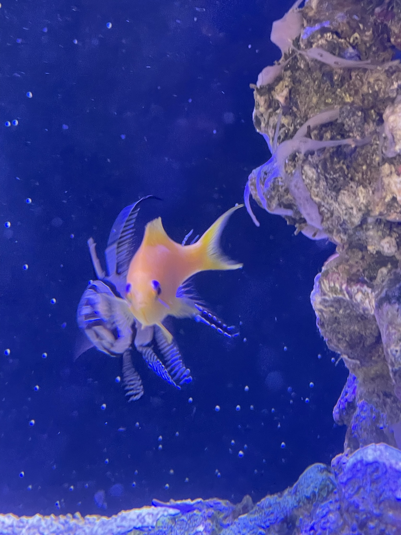 Yeps, den svømmer endnu. Og er begyndt at spise artemia fra frost men det tyder også på den har smag for Zoaer, hvilket jeg vidste var en risiko, men helt okay.